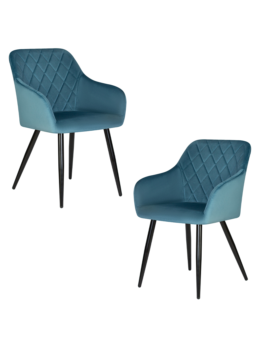Набор 2 шт Стул обеденный DOBRIN ROBERT, черные матовые ножки, велюр V108-108 Морская волна