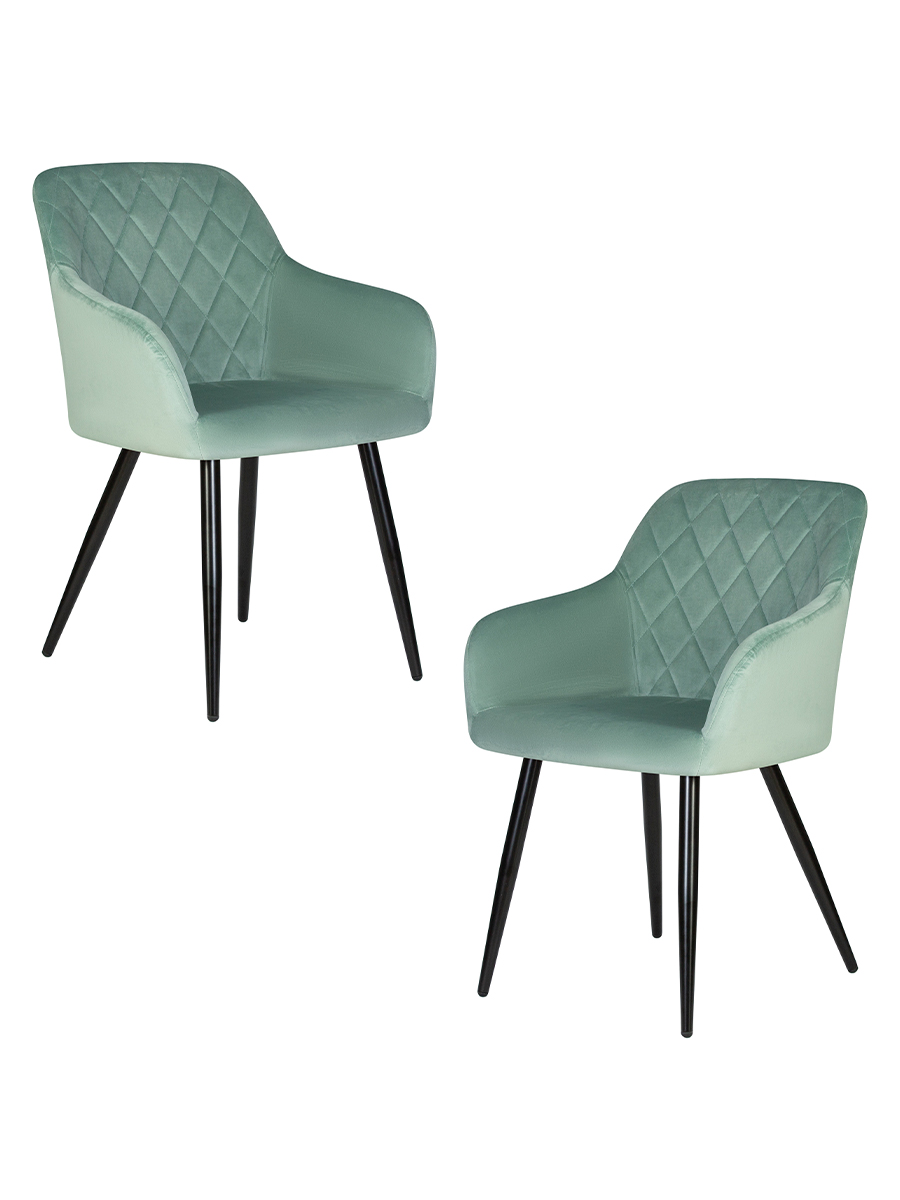 Набор 2 шт Стул обеденный DOBRIN ROBERT, черные матовые ножки, велюр V108-118 Мятный