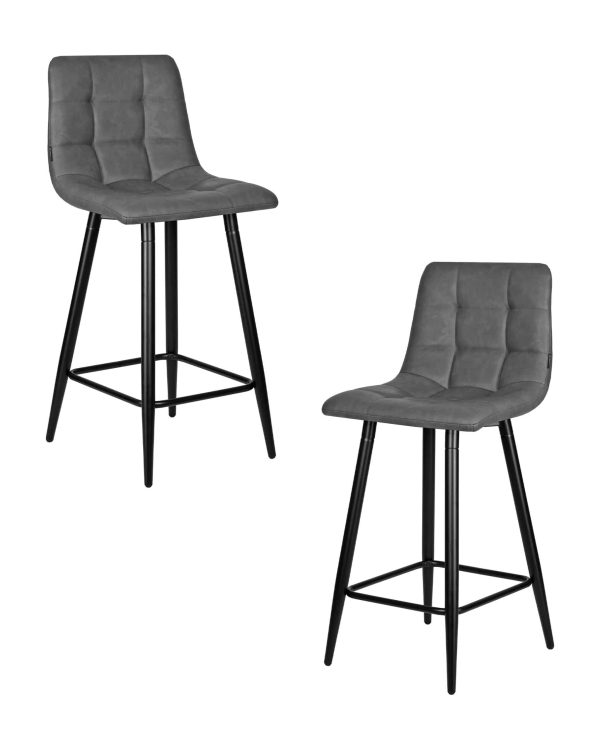 Набор 2 шт Стул полубарный DOBRIN OLIVIA, черные матовые ножки, серая антрацитовая винтажная экокожа (RU-08)