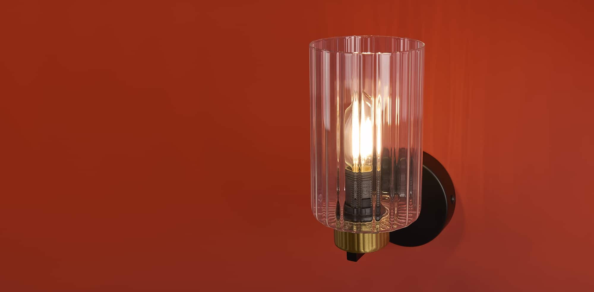 Металлическая арматура чёрного матового цвета с латунными вставками. Прозрачные цилиндрические стеклянные абажуры. Лампы E14 (не включены). Трендовое сочетание для современных интерьеров.