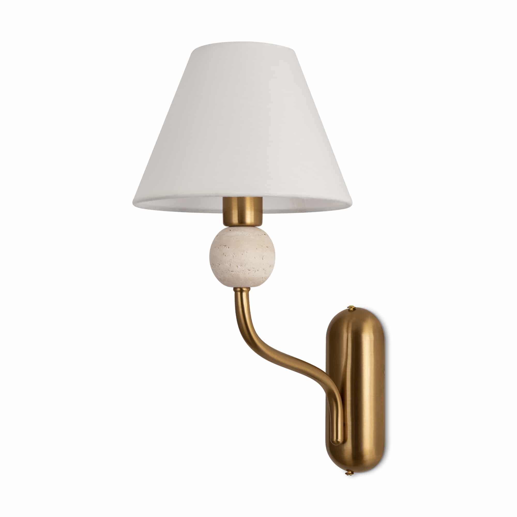 Арматура — металл в цвете латунь. Тканевые абажуры, травертиновые элементы. Лампы E14 (в комплекте). Серия состоит из люстры c 5 плафонами и бра. Трендовое сочетание в классическом стиле.