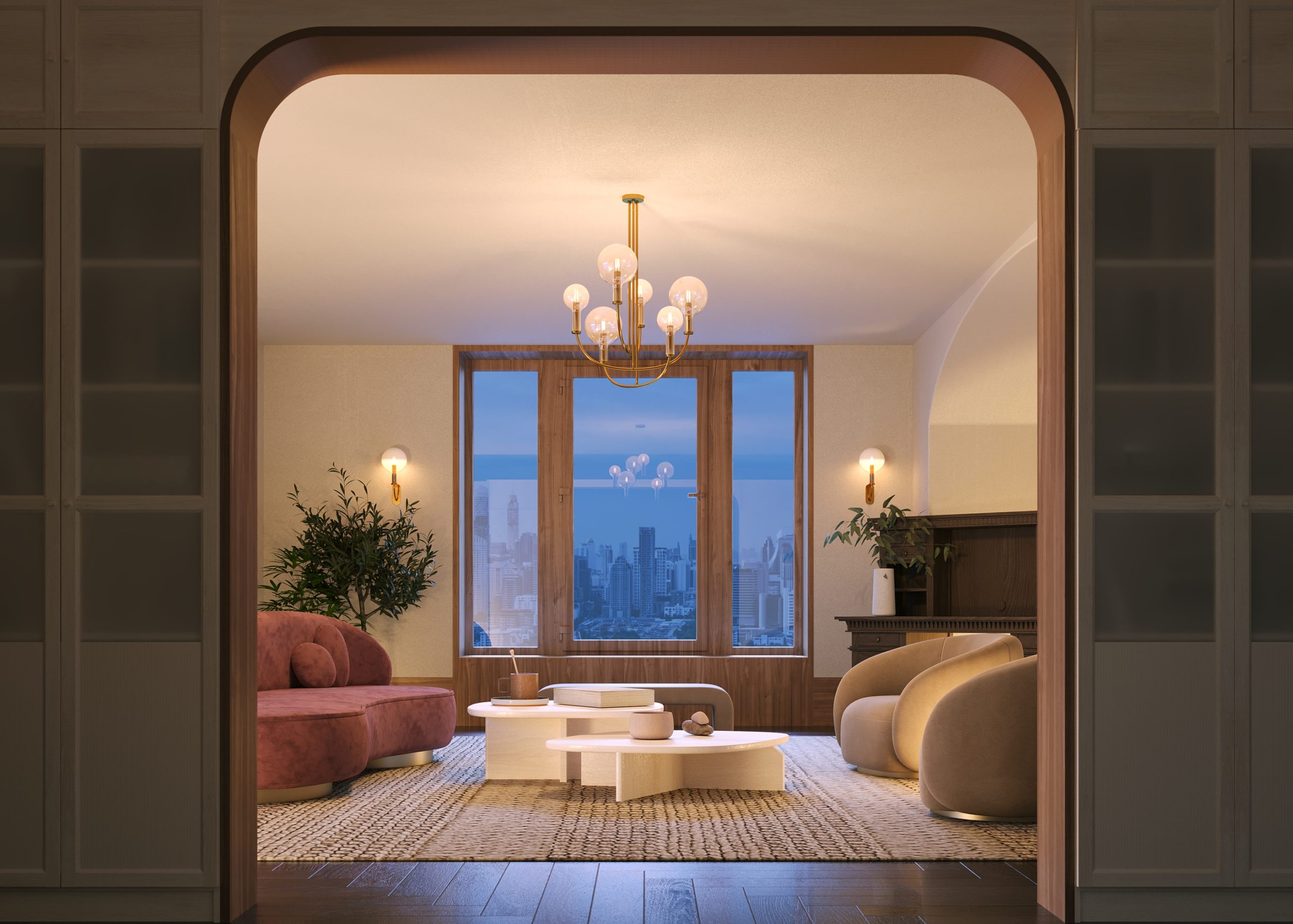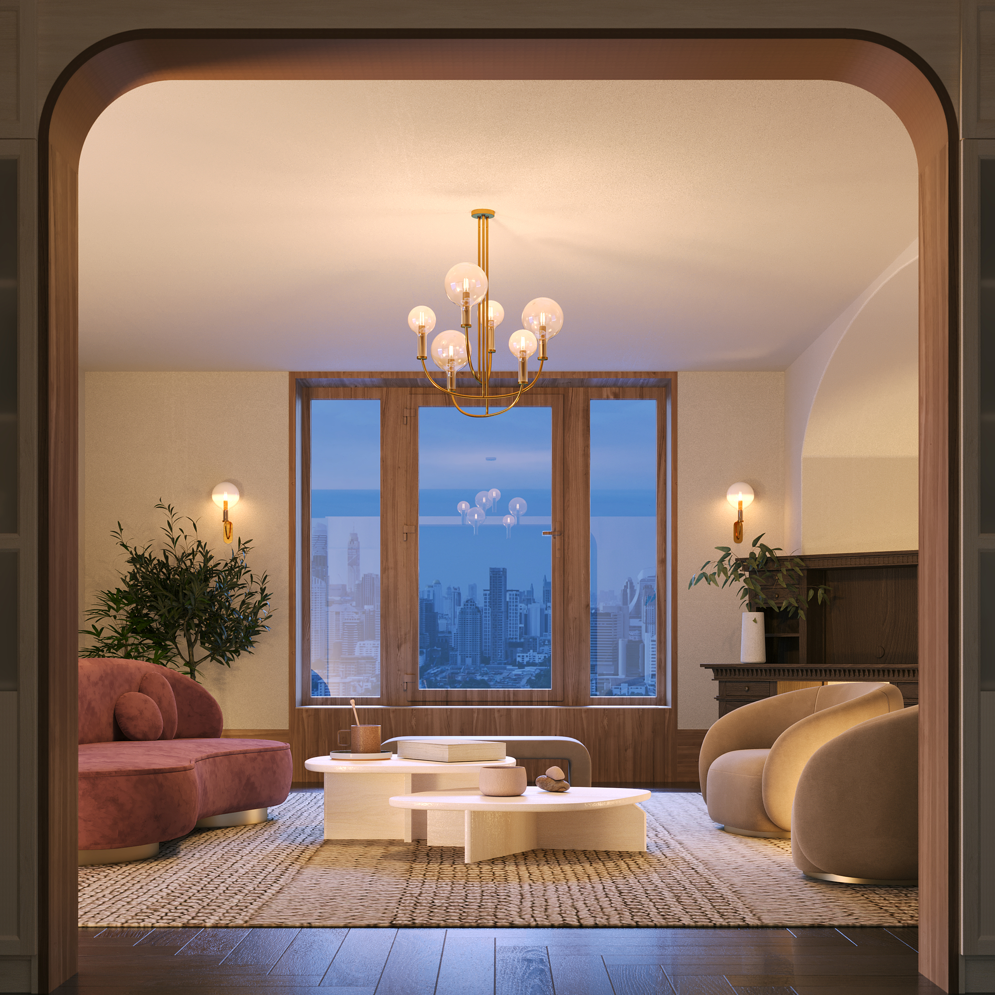 Оригинальный дизайн в американском неоклассическом стиле. Два цветовых решения: черная арматура в сочетании с белыми градиентными плафонами, арматура в цвете латуни и прозрачные плафоны. Материал арматуры — металл. Плафоны из выдувного стекла. Арочные силуэты в духе современных трендов. Подвесные светильники с регулируемой высотой и лаконичное бра.