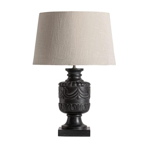 Настольная лампа, черно-белая, в провансальском стиле. Изготовлен из дерева манго в сочетании с хлопком. Съемный продукт.