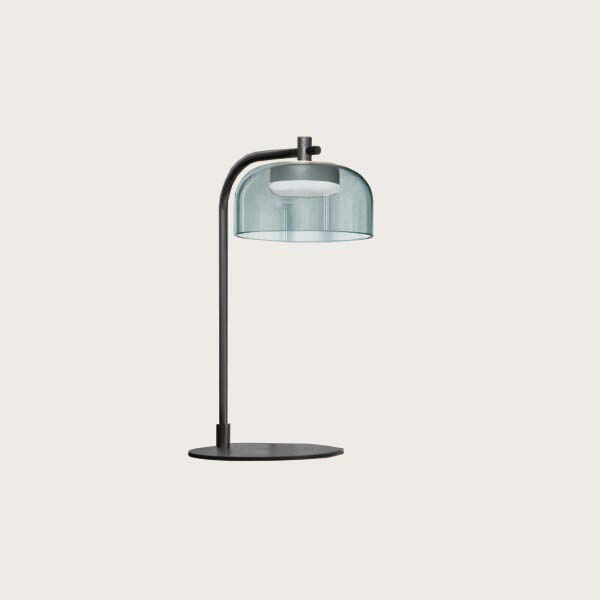 Настольная лампа Ipon черный металл, дымчато-синий плафон