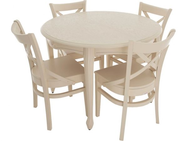 Обеденная группа (Стол Кабриоль круг и 4 стула Соло Венский жесткий), слоновая кость