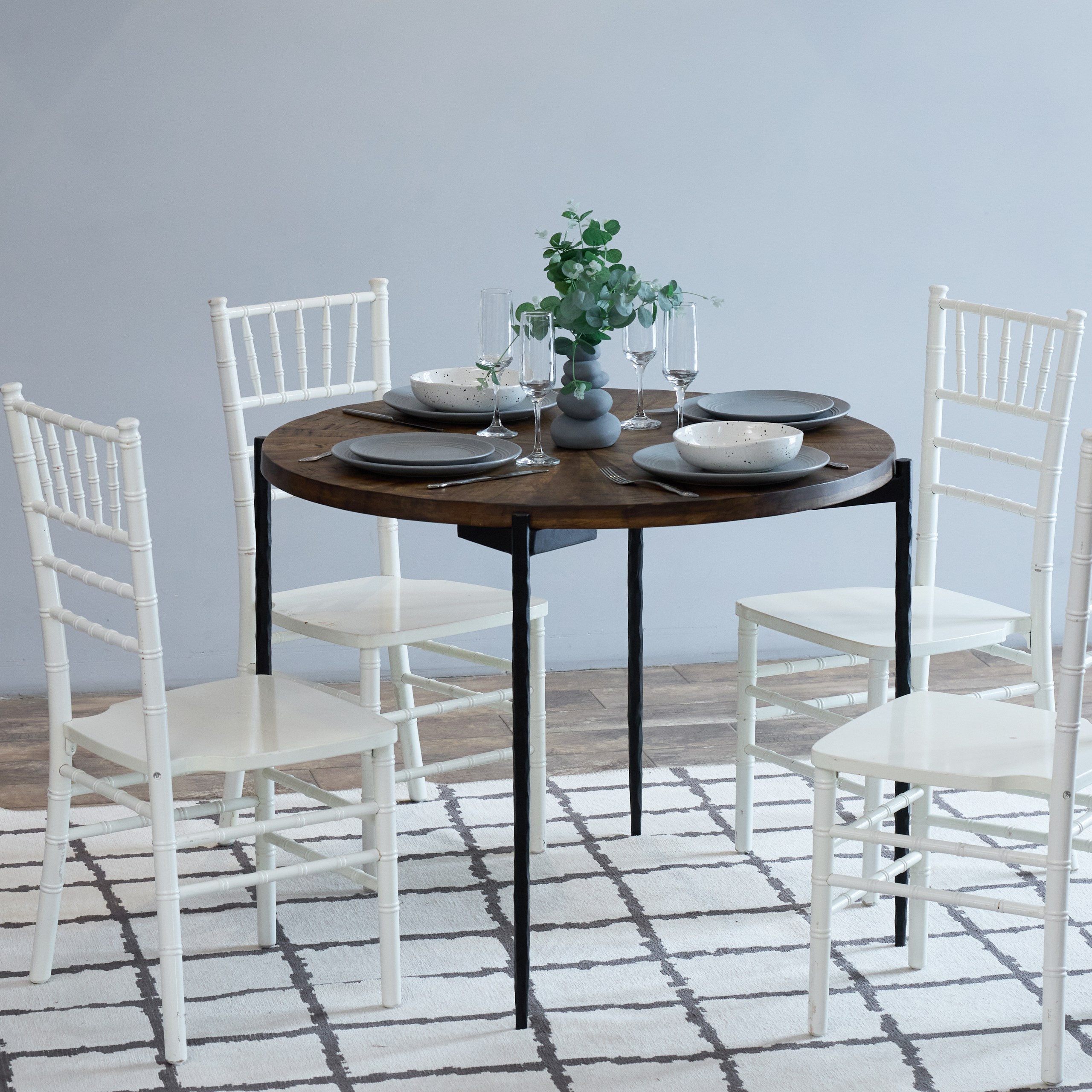 • Изящные конусообразные ножки чёрного цвета — визуальная лёгкость при максимальной устойчивости