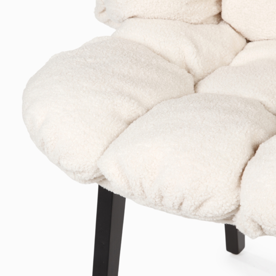 Нежный цвет, напоминающий легкие облака на закате. Текстура меха создает игру света и тени, добавляя глубину и объем формам стула. Эта модель само воплощение современной эстетики с нотками ретро-футуризма. Плавные линии и округлые формы создают ощущение обволакивающего комфорта, словно стул обнимает сидящего.