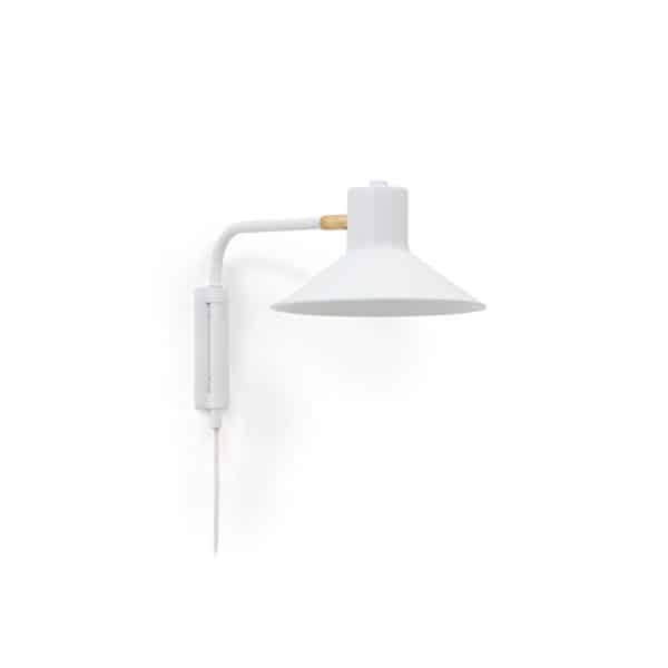 Настенный светильник PLASS полностью сделан из металла, окрашенного в белый матовый цвет.