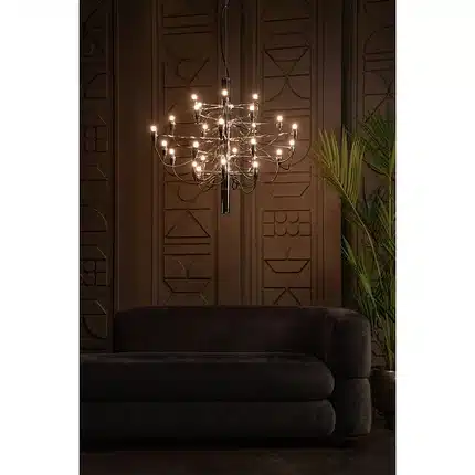 Люстра Divinare 8030/02 LM-30 серии MOLTO. Даст комфортный свет в комнате. Размеры 86x86x72 cm. Диаметр 86 cm Параметры пылевлагозащиты IP — 20. Форма изогнутая. Без плафона без плафона, а материал/цвет арматуры металл/хром. Использует 30 ламп с цоколем E14. Площадь освещения охватывает 24 m². Идеально подходит для гостиной. Страна происхождения бренда — ИТАЛИЯ. Вес с упаковкой 6.6 kg