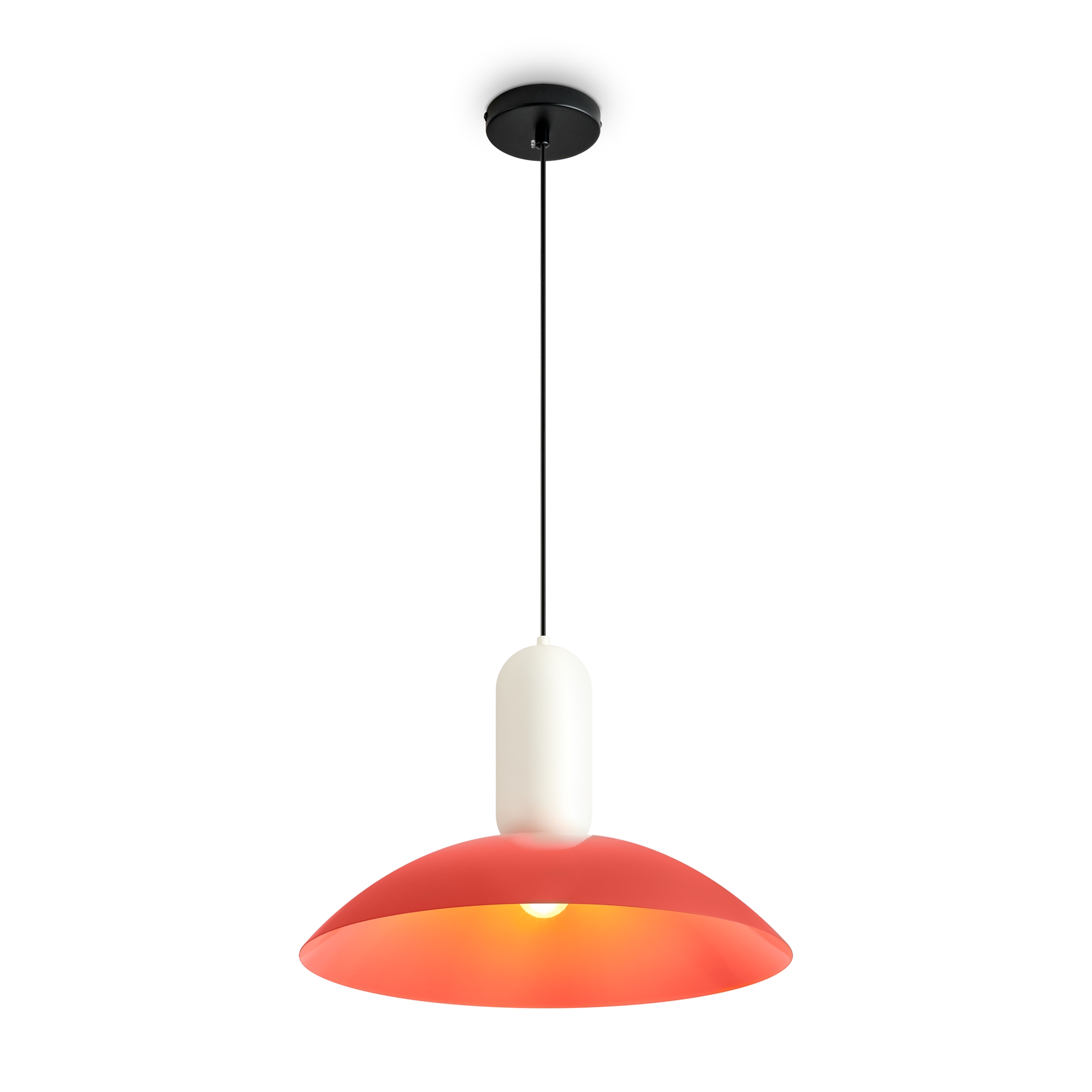 Арматура — чёрный металл.Каждый подвесной светильник окрашен в 2 цвета: серо-бежевый и жемчужно-белый, каменно-серый и белый, белый и каменно-серый. з новинки в сочетниях новых оттенков — чисто красный и мята бирюзовая.