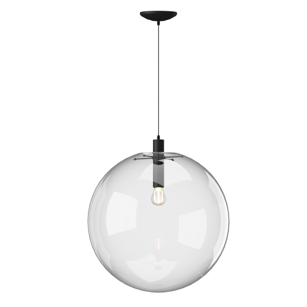 Круглый стеклянный подвес с фурнитурой в черном цвете.