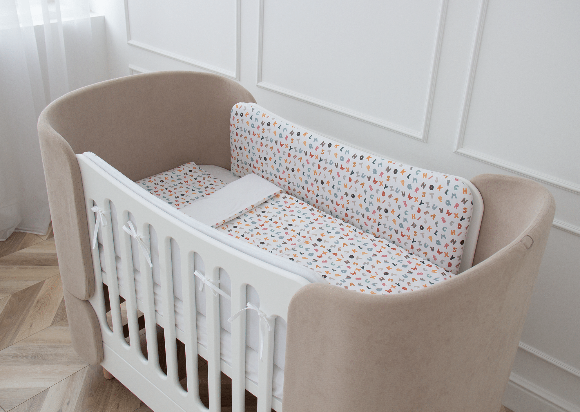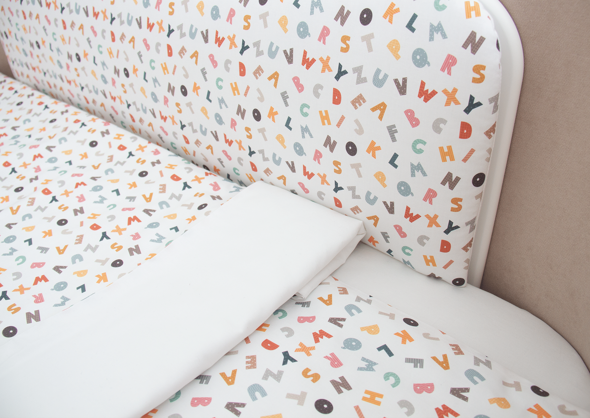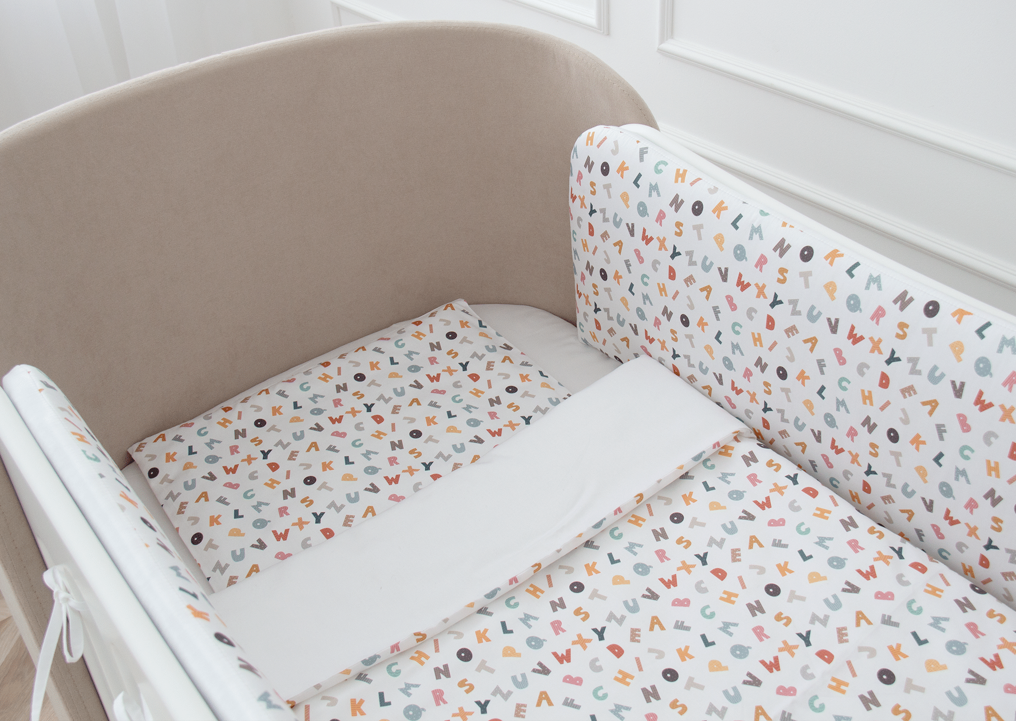 Постельное бельё в детскую кроватку. Состав: наволочка 40*32 см, пододеяльник 90*110 см «Разноцветные буквы» (сатин)