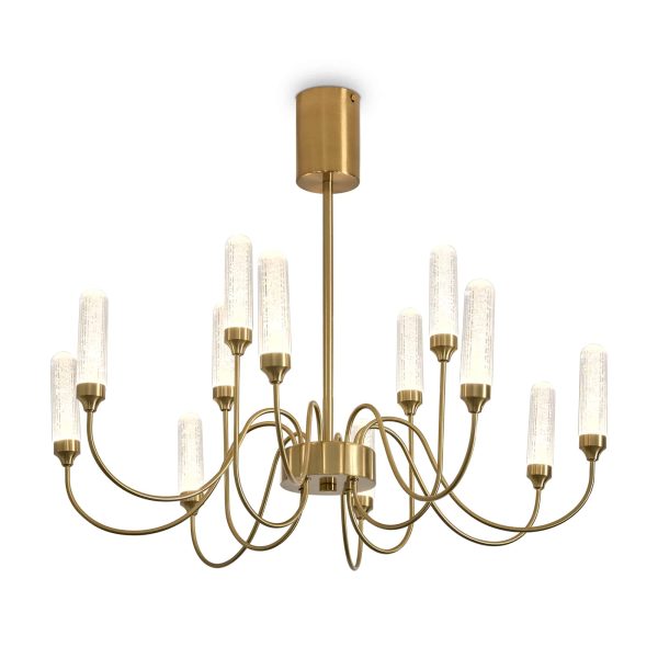 Арматура — металл в цвете латунь и никель. Основной акцент в дизайне люстр Alias сделан на акриловые плафоны, эффект пузырьков. Встроенный LED модуль 2700K. 2 дизайна подвесных светильников.