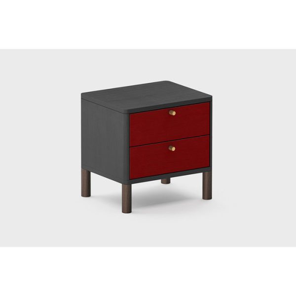 Прикроватная тумбочка Latitude SAGA HORDUR COLORED BODY черного цвета в отделке темный ясень с бордовыми элементами