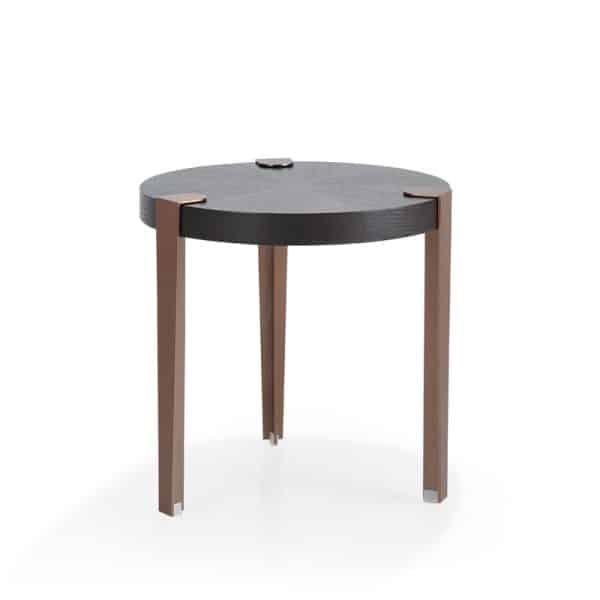 Основание столика в цвете матовая бронза, дополнена контрастной темной столешницей.