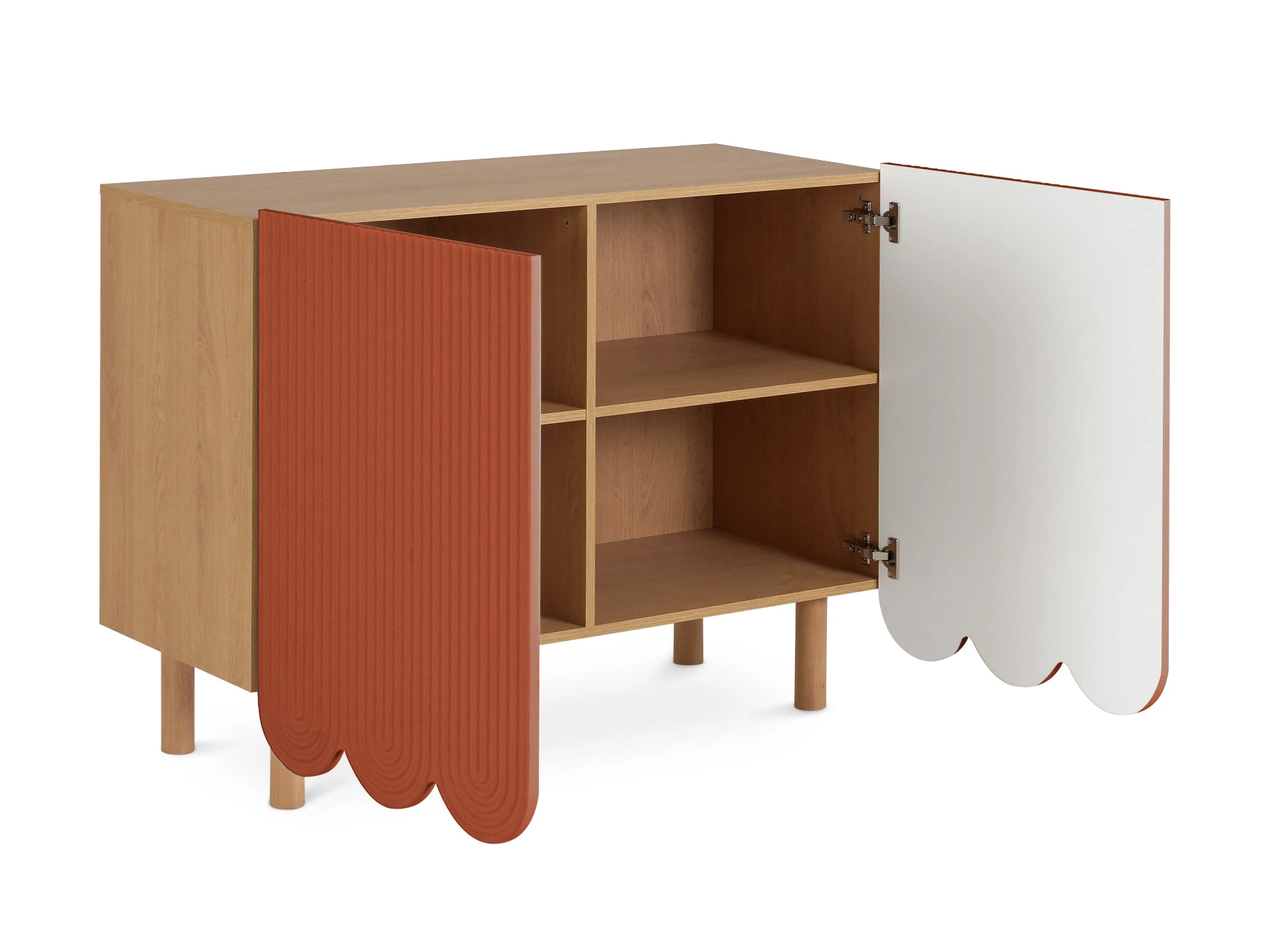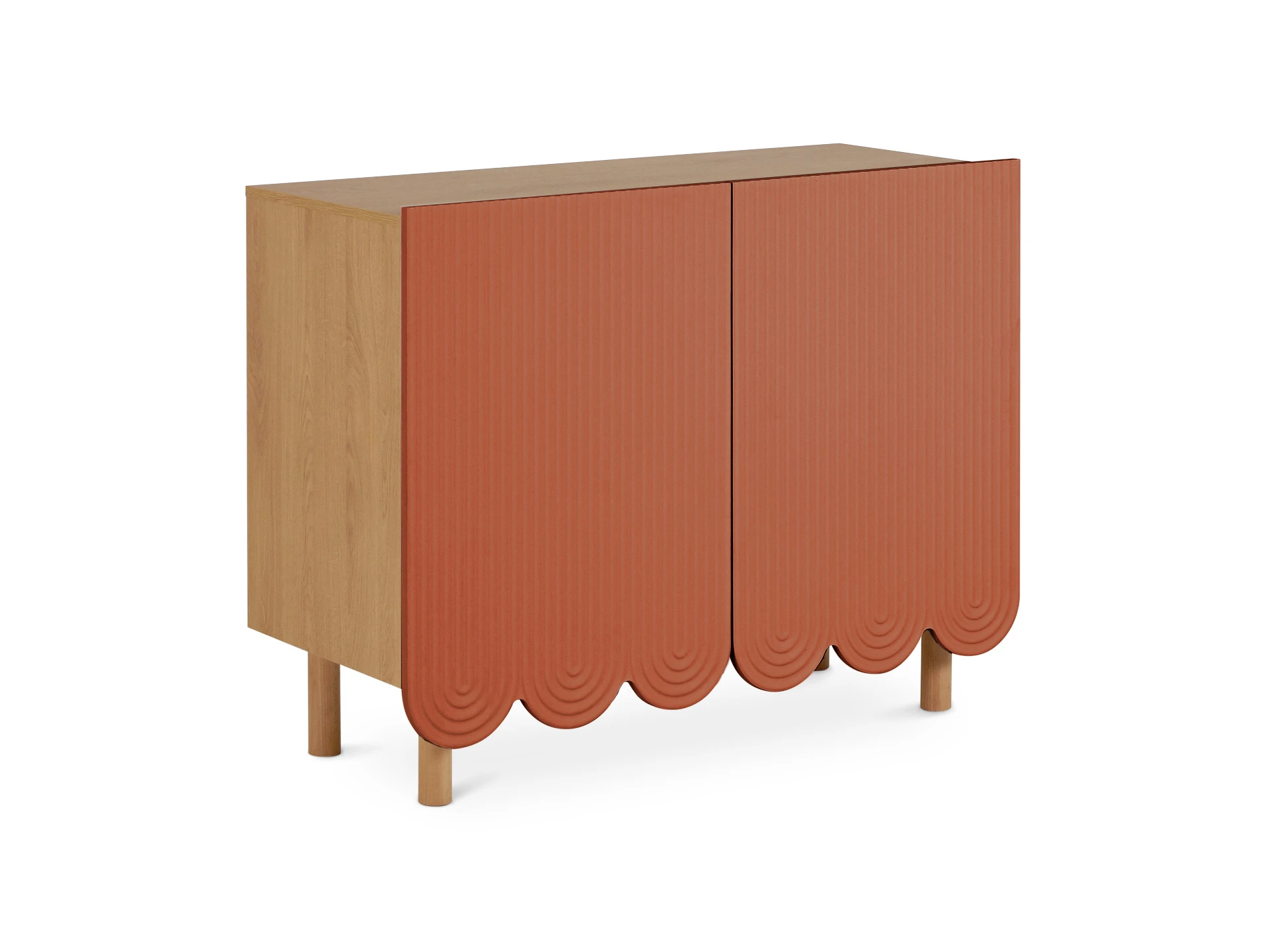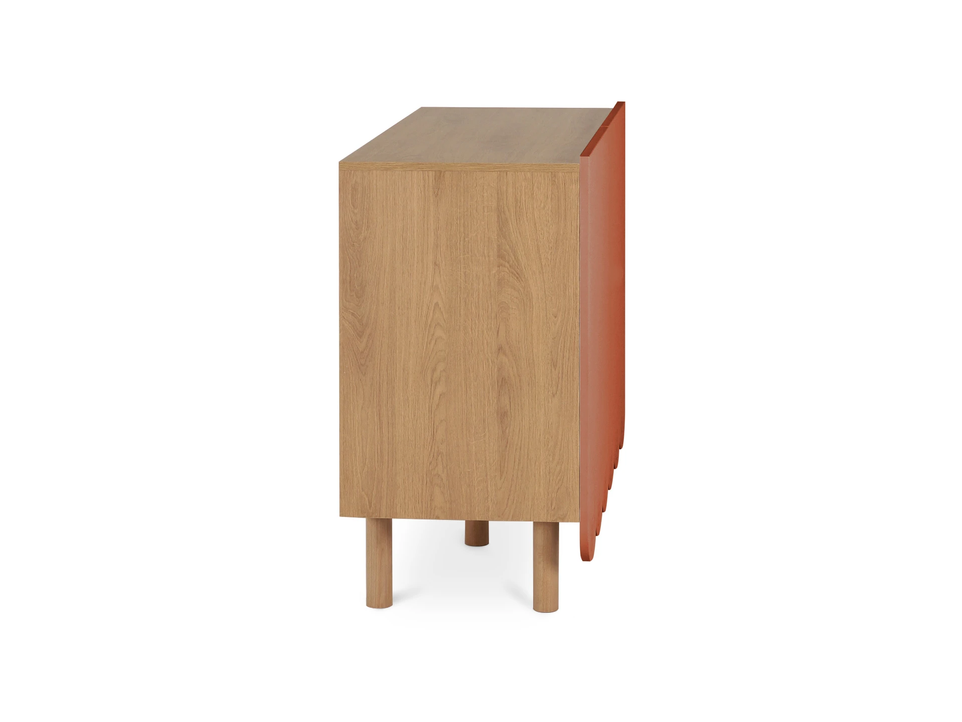 Компактные круглые ножки из бука невысоко приподнимают над полом корпус серванта. Что обеспечивает лёгкость восприятия и воздушность модели. А также простоту уборки. За дверцами скрываются 4 отсека для хранения разных предметов от техники до косметики. Сервант Mira можно использовать в качестве ТВ-консоли в гостиной, найдётся ему местечко и в спальне, рабочей или обеденной зоне. Можно дополнить органайзерами для хранения украшений, аксессуаров. Цвет фасадов может быть ярким, например, терракотовым, графитовым, или нейтральным: белым, бежевым. В любом варианте сервант Mira станет эффектным акцентом интерьера.
