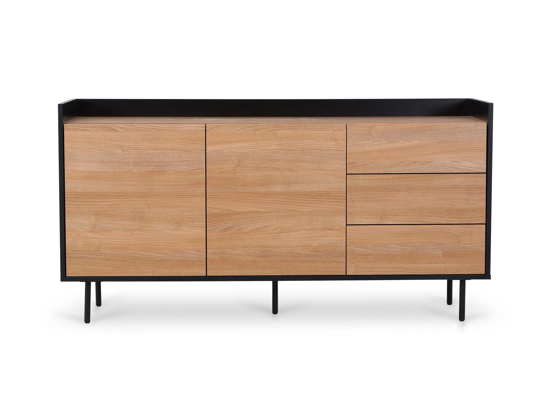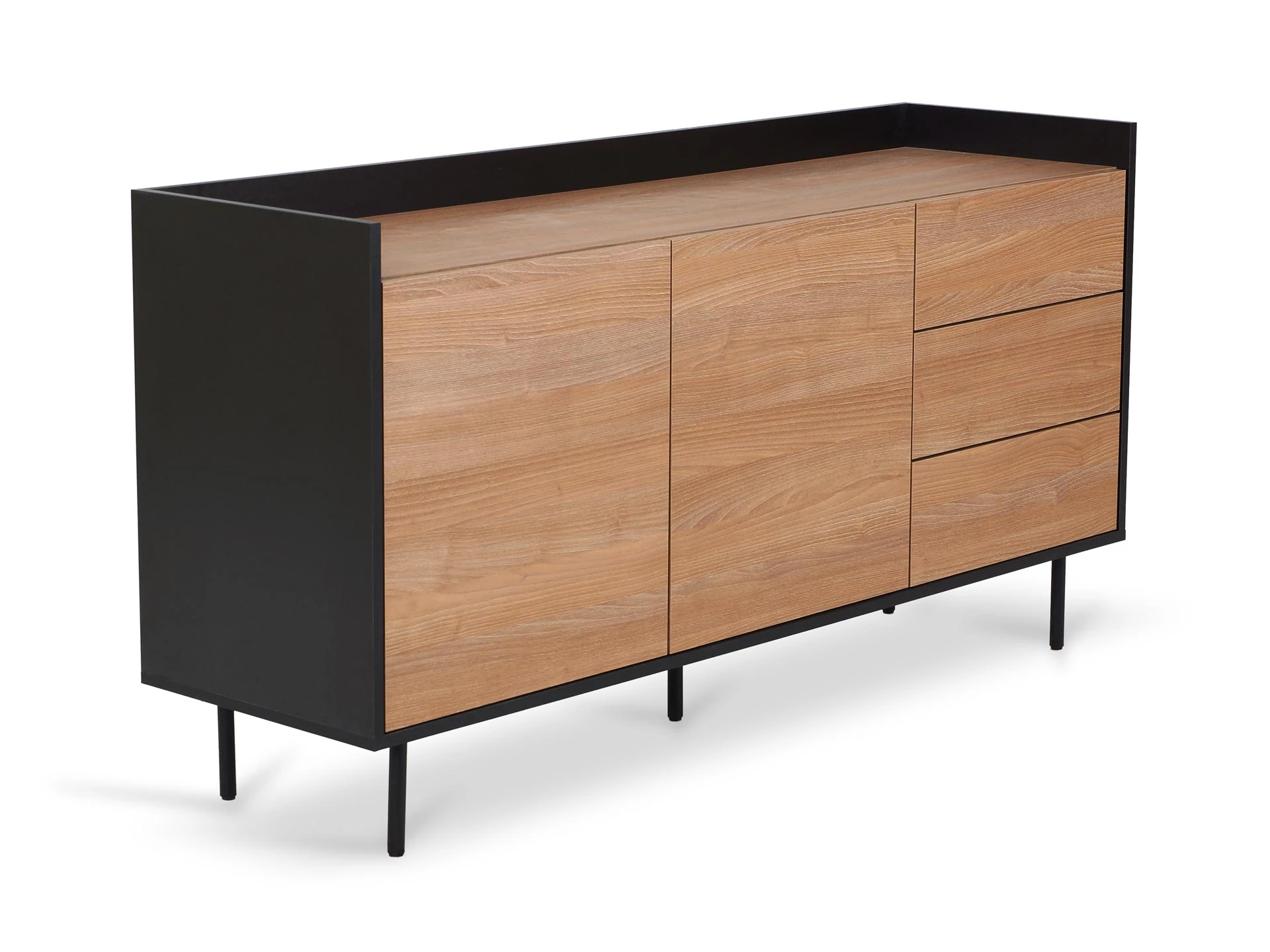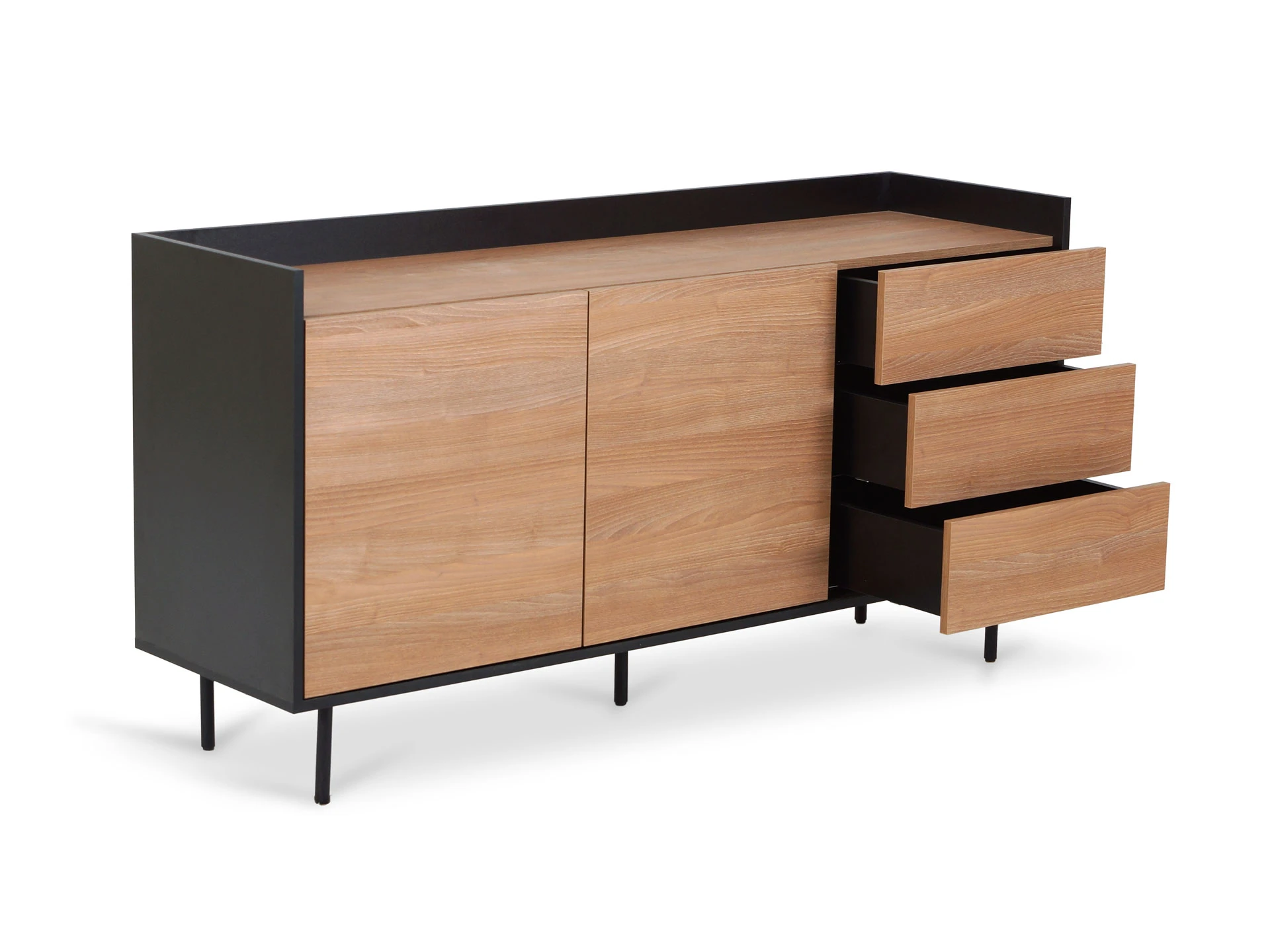 Особенность линейки заключается в контрасте элементов. Скругленные изящные металлические ножки поддерживают внушительное основание. При этом внешний вид моделей остается лёгким и элегантным. Также игру противоположностей усиливают древесная текстура на фасадах и черный цвет боковин с задней стенкой. Что придаёт большей динамики и выразительности дизайну. Эксклюзивность и завершенный вид воссоздает рамка, возвышающаяся над верхним горизонтом. Минималистичный вид конструкциям обеспечивает скрытая фурнитура. Двери и ящики открываются плавно, без шума и усилий. Комбинируйте комоды и серванты Look для создания целостного образа интерьера.