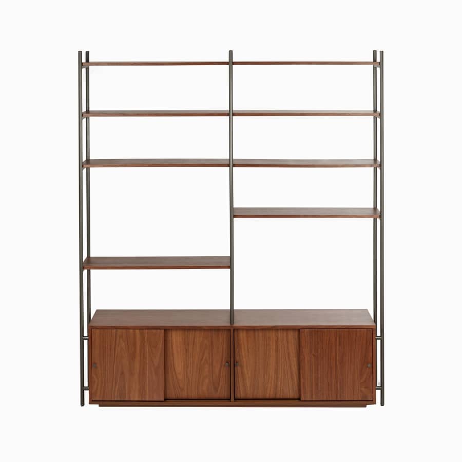 Стеллаж Vallery впечатляет своим стильным дизайном, который гармонично сочетает современность с классическими элементами.