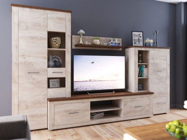 Добавить в отслеживание ценСтенка-горка в гостиную «Мэдисон» под телевизор — это готовое решение для гостиной в современном европейском дизайне. Покрытие из ЭКОшпона повторяет фактуру и рисунок натурального дерева, устойчиво к износу. Крышки стенки, полки и ниша под телевизор выполнены из утолщенной плиты с мягкими безопасными краями. Мебель выполнена из Пластиковая кромка последнего поколения защищает от выделения вредных веществ, ЛДСП Австрийского концерна Кроношпан класса эмиссии Е1, задняя стенка и донья ящиков из экологичного ХДФ вставлена в паз. Стенку можно дополнить просторным шкафом, вместительным комодом и журнальным столом,это позволяет создать комплект в едином стиле.