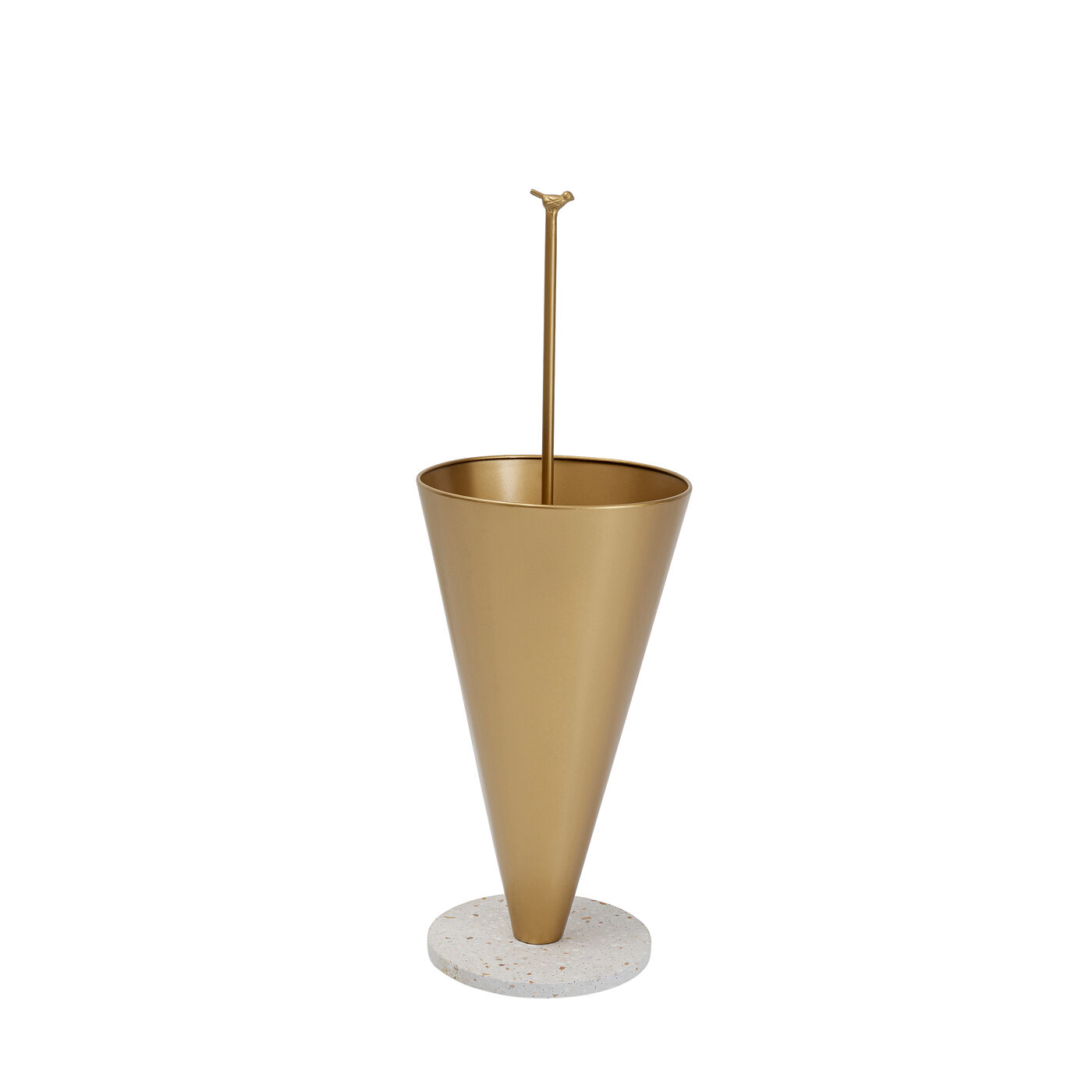 Стойка для зонтов Singing In The Rain Gold от KARE Design не только практичный, но и стильный аксессуар для дома. Изделие отличает очаровательный дизайн с небольшой фигуркой птички на ручке. Корпус изготовлен из лакированной стали, круглое основание выполнено из искусственного мрамора.Подставка для зонтов станет практичным домашним аксессуаром для любой прихожей, это также отличная идея в качестве подарка на новоселье.