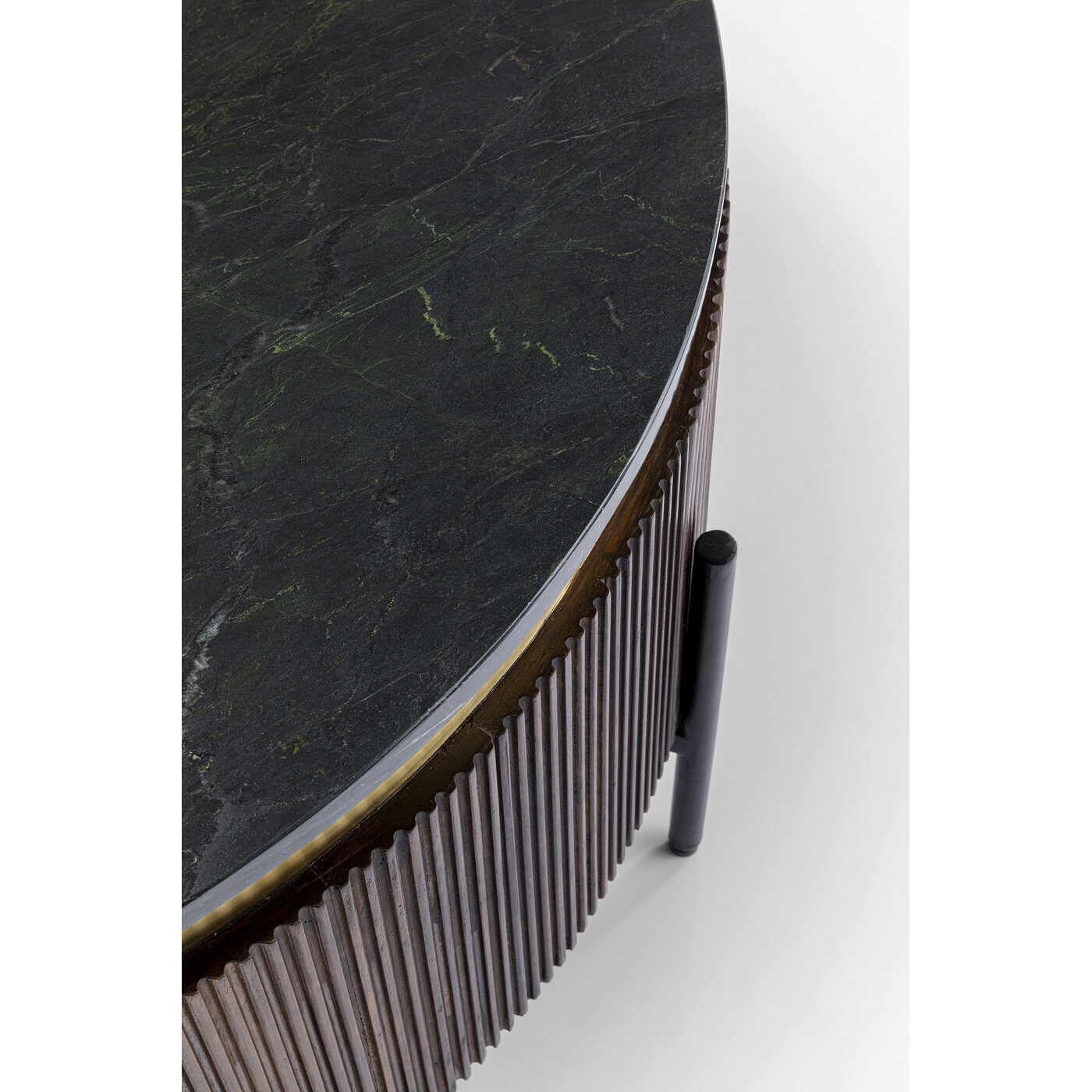 Современный и стильный с оттенком роскоши — эти характеристики очень хорошо подходят круглому журнальному столику Catalina от KARE Design. Этот предмет мебели, безусловно, является долгосрочной инвестицией, ведь известно, что деревянная мебель особенно долговечна. Для создания этого драгоценного предмета мебели были использованы только первоклассные материалы: темный лак, массив дерева манго, сталь, латунная отделка и минеральный мрамор. Профессионалы в области дизайна интерьеров знают, что взаимодействие различных поверхностей делает помещение особенно ярким. В случае с этим кофейным столиком металлическая латунь, камень столешницы и корпус, украшенный тонкими ламелями, создают визуально гармоничную триаду. С этим круглым столом вы добавите особый шарм в свою гостиную.
