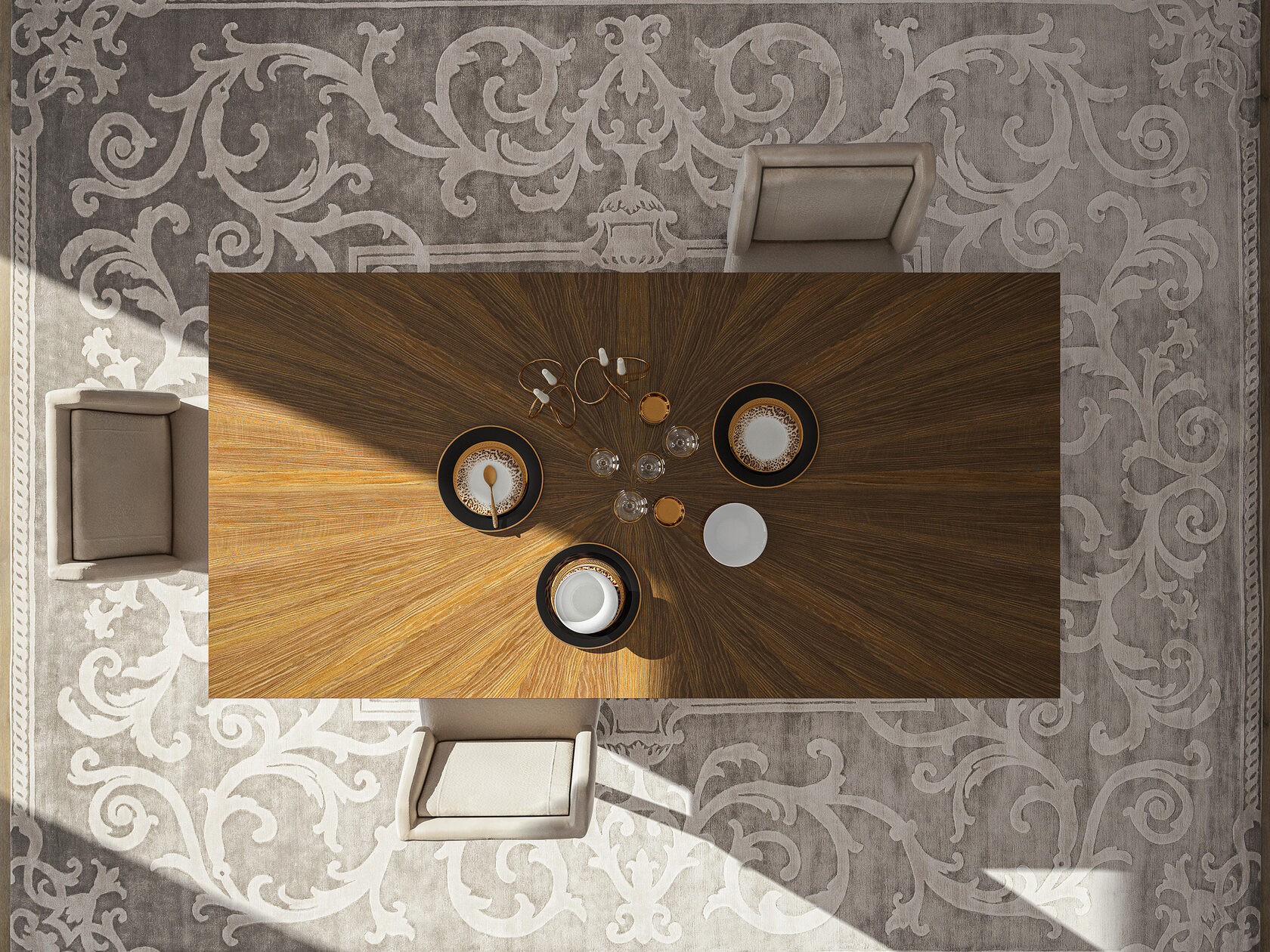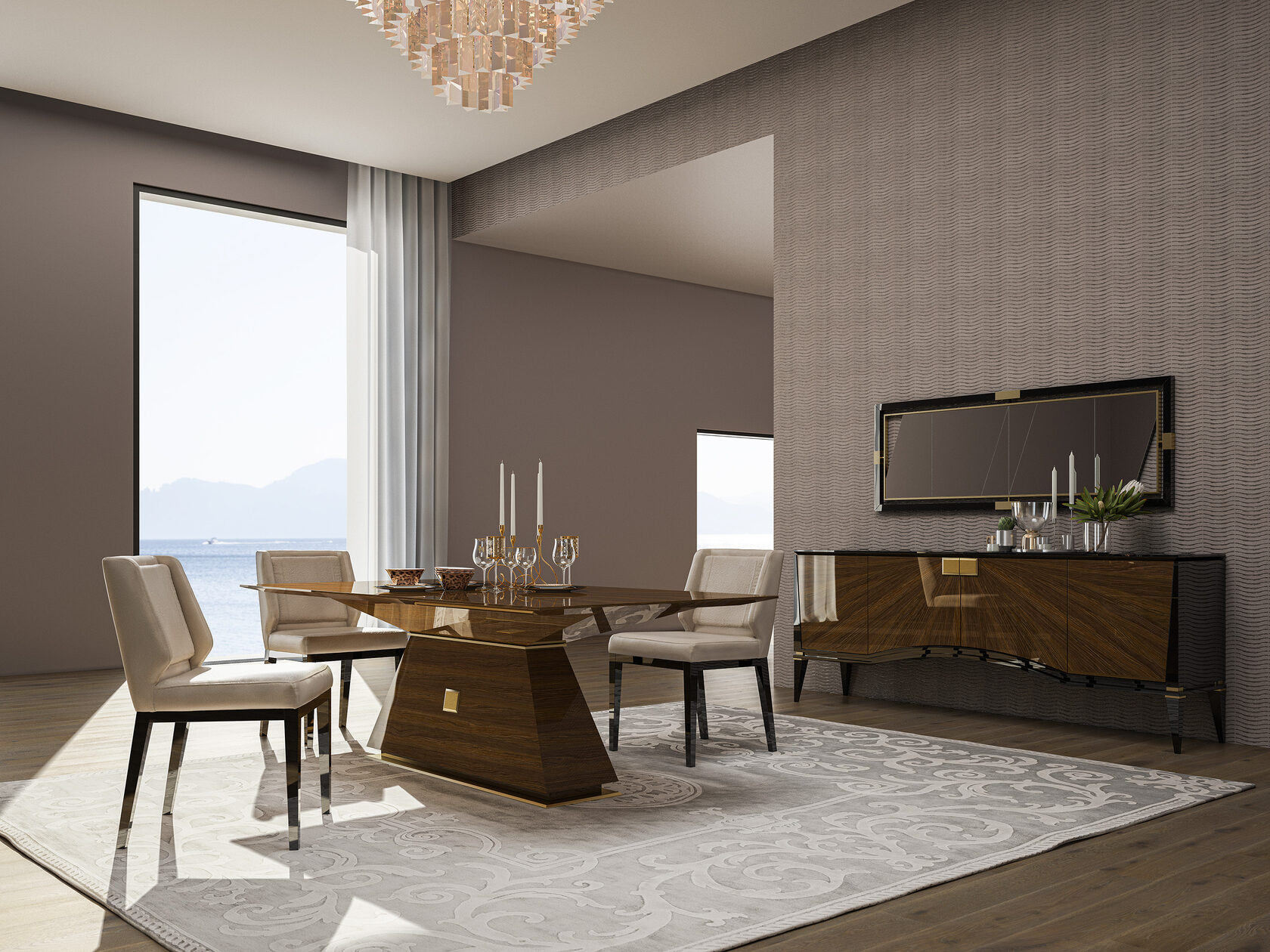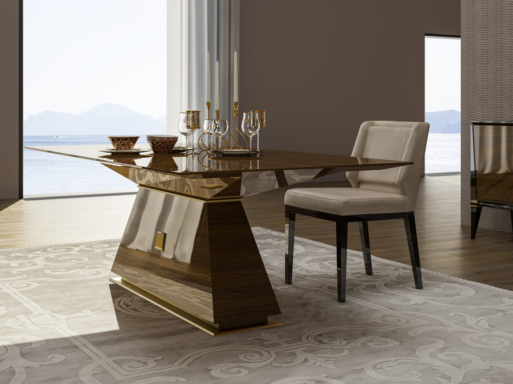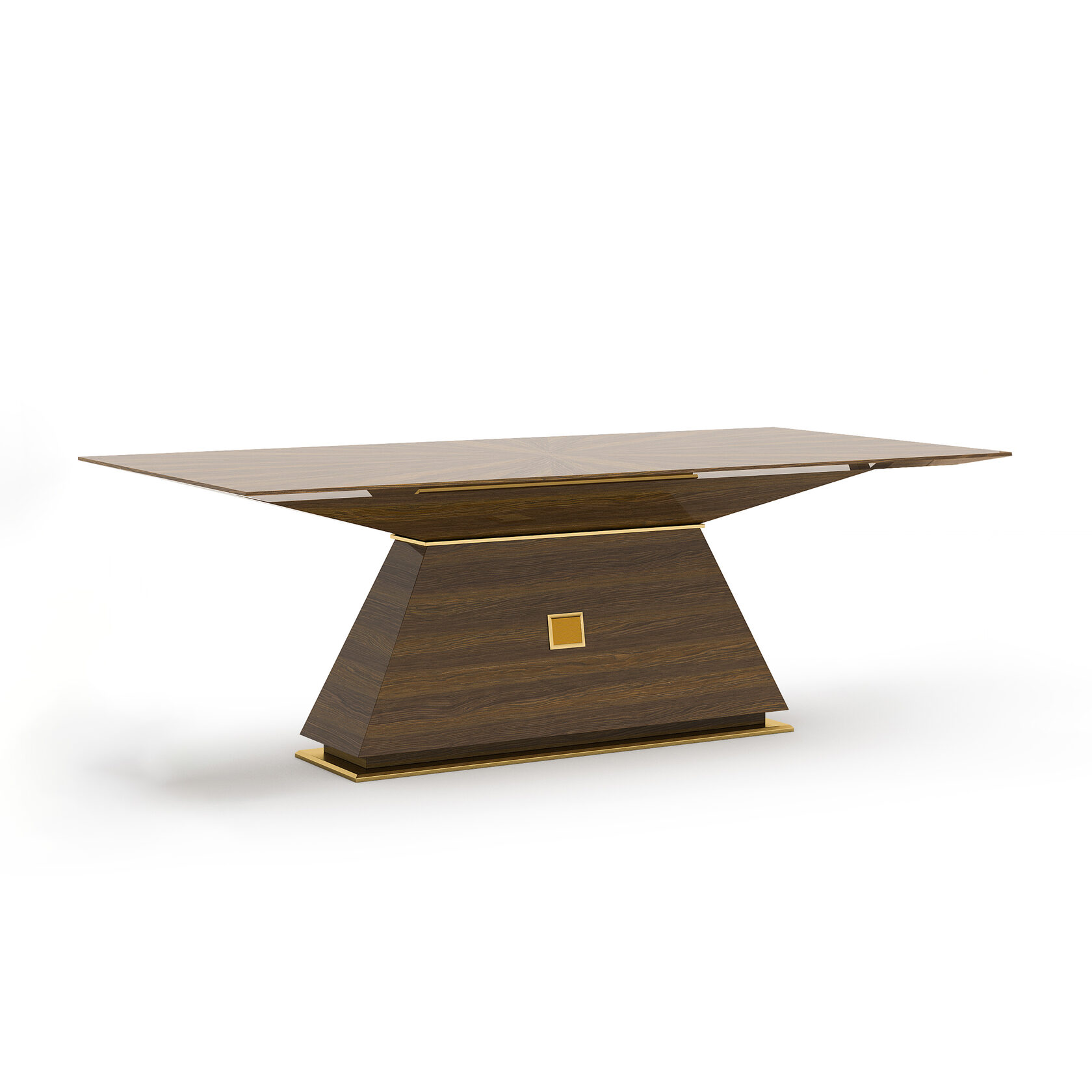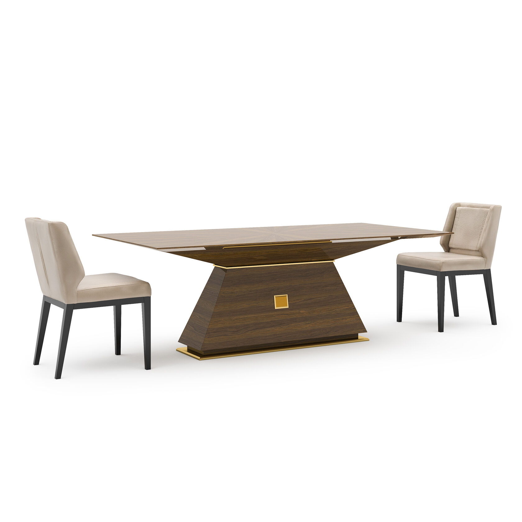 Обеденный стол Kaнт создаст ощущение уникальности. Он переносит нас в прошлое благодаря необычной интерпретации классических деревянных изделий и латунных деталей. Четкие линии стола выполнены из МДФ шпона, покрытого итальянским лаком.