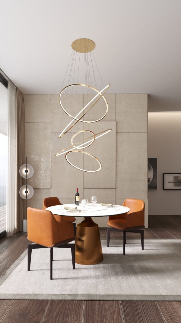 Роскошный обеденный стол с керамической столешницей под мрамор и полукруглой металлической ножкой. Эксклюзивная дизайнерская модель из новой коллекции Milosh tendence.