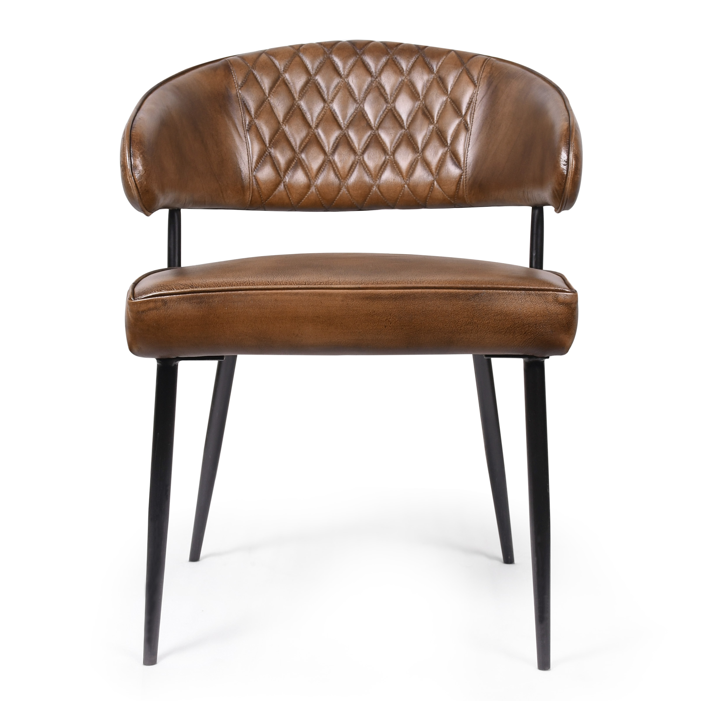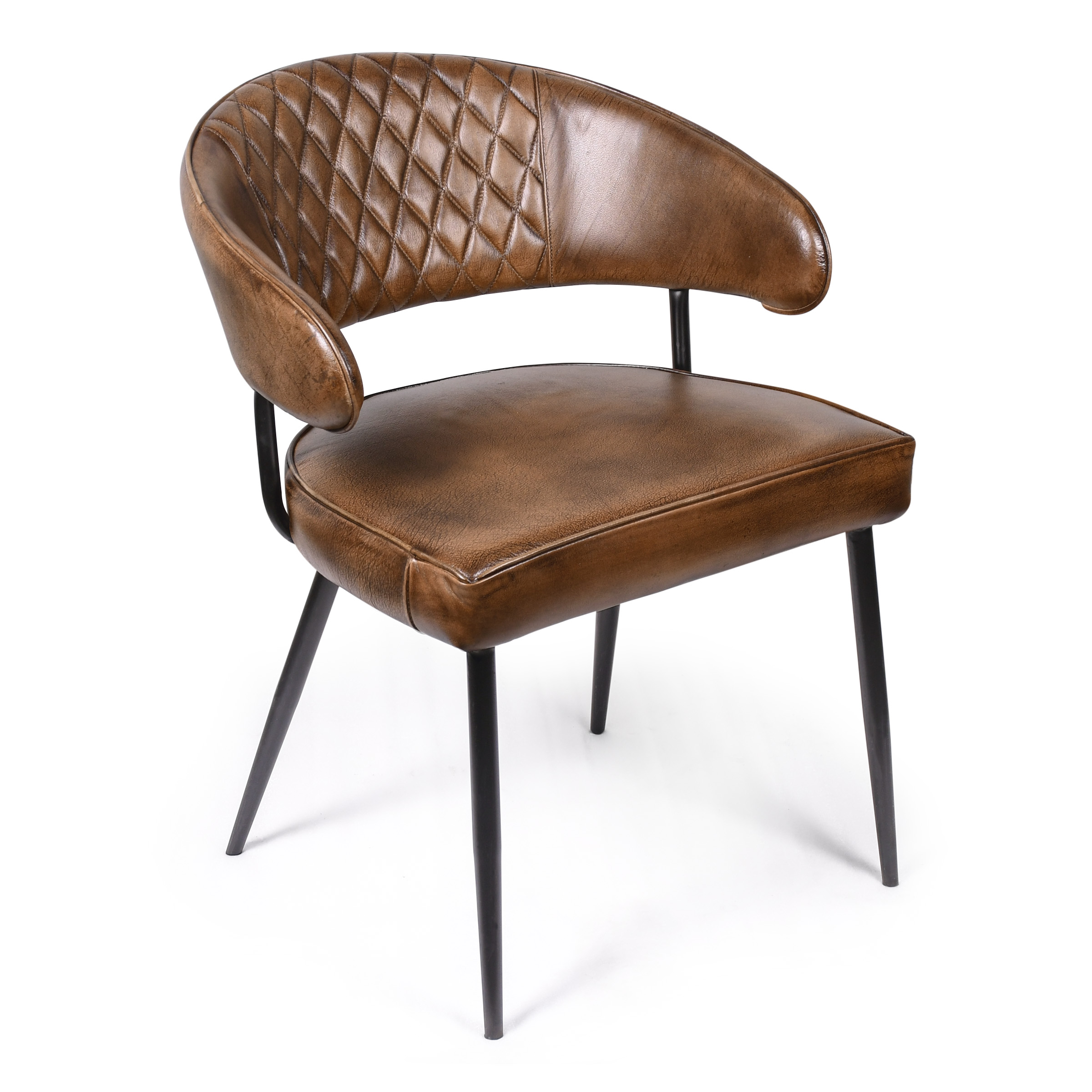 Изысканный стул, в котором современный минимализм встречается с продуманной эргономикой. Конусообразные металлические ножки создают ощущение легкости и устойчивости, а насыщенный коричневый цвет кожаной обивки добавляет интерьеру спокойствия и стиля. Спинка с боковой поддержкой обеспечивает комфортное положение спины даже при длительном сидении, а дополнительная набивка сиденья гарантирует оптимальную мягкость.