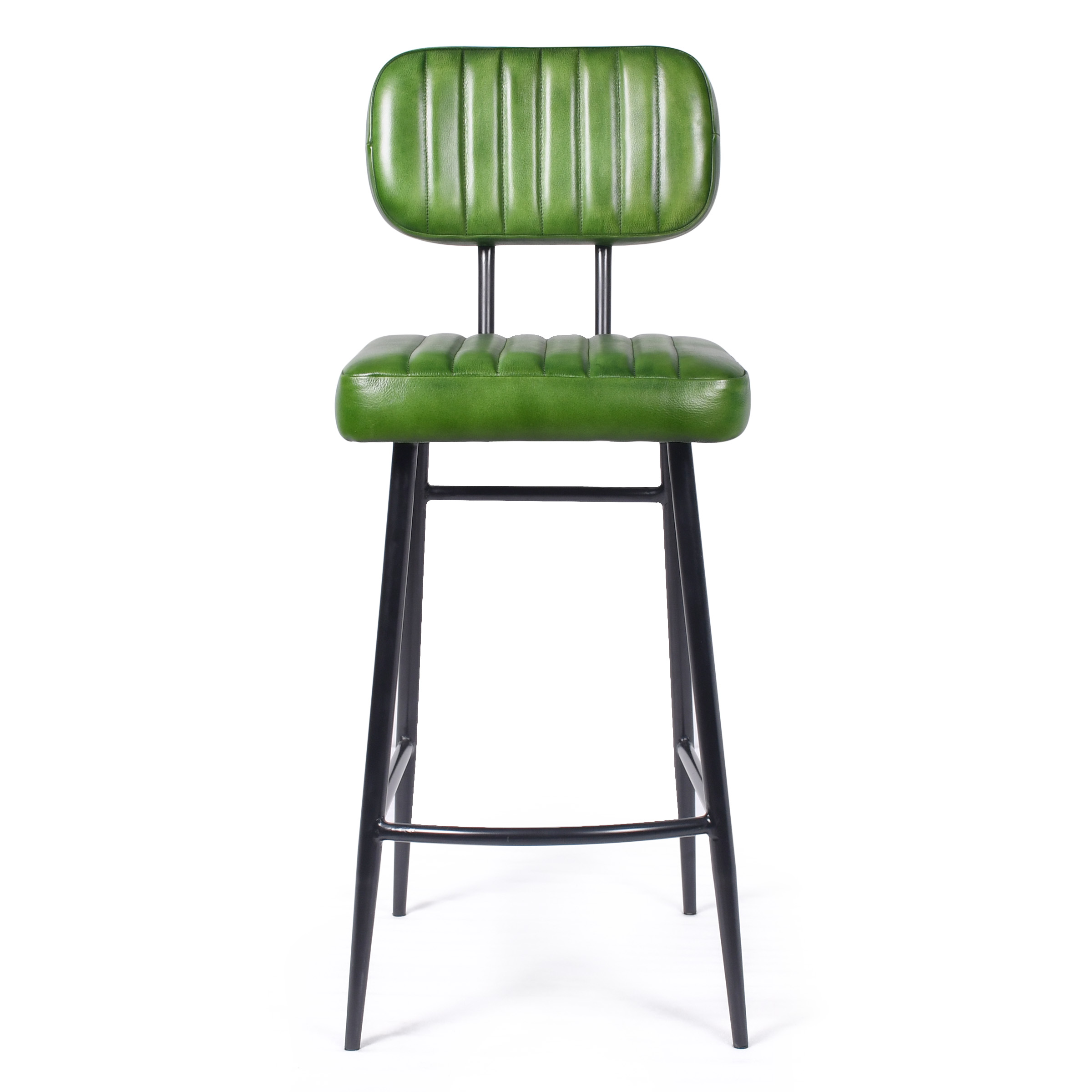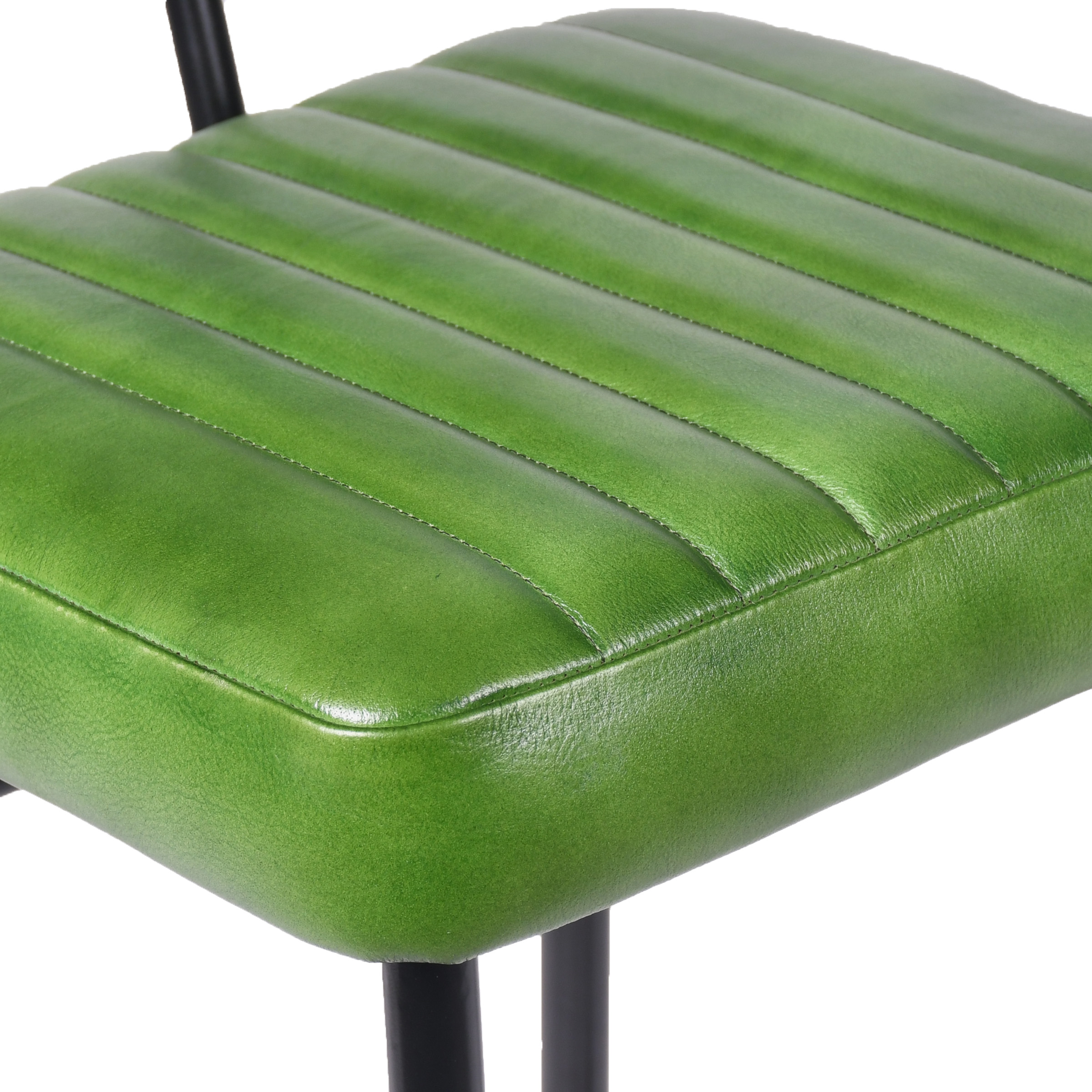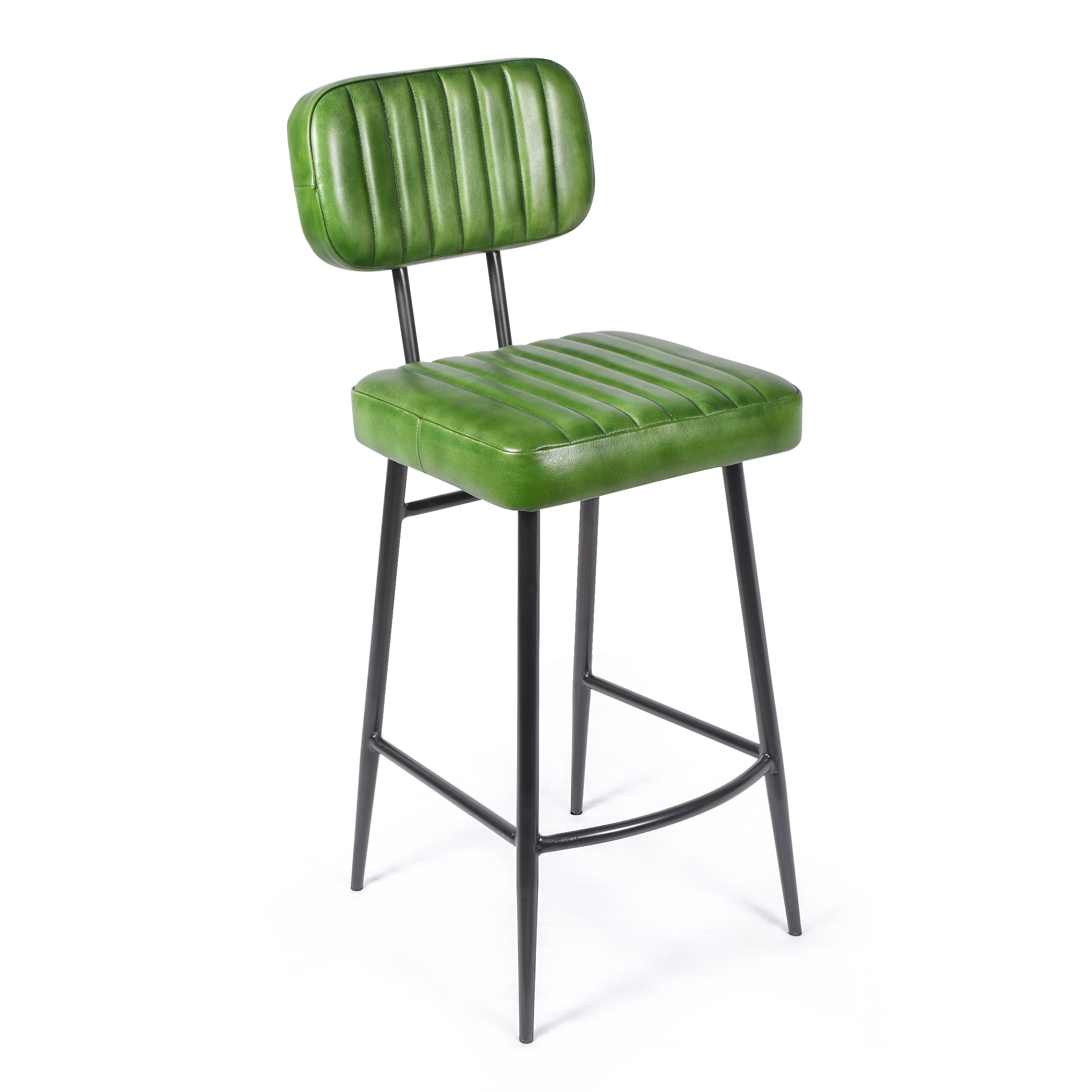 Барный стул с удлиненным основанием, создающий яркий акцент в интерьере. Строгие черные металлические ножки подчеркивают геометрию формы, а сочная зеленая кожа спинки и сиденья привносит энергию тропиков. Дополнительная набивка сиденья обеспечивает повышенный комфорт, а горизонтальная стяжка гарантирует прочность конструкции.