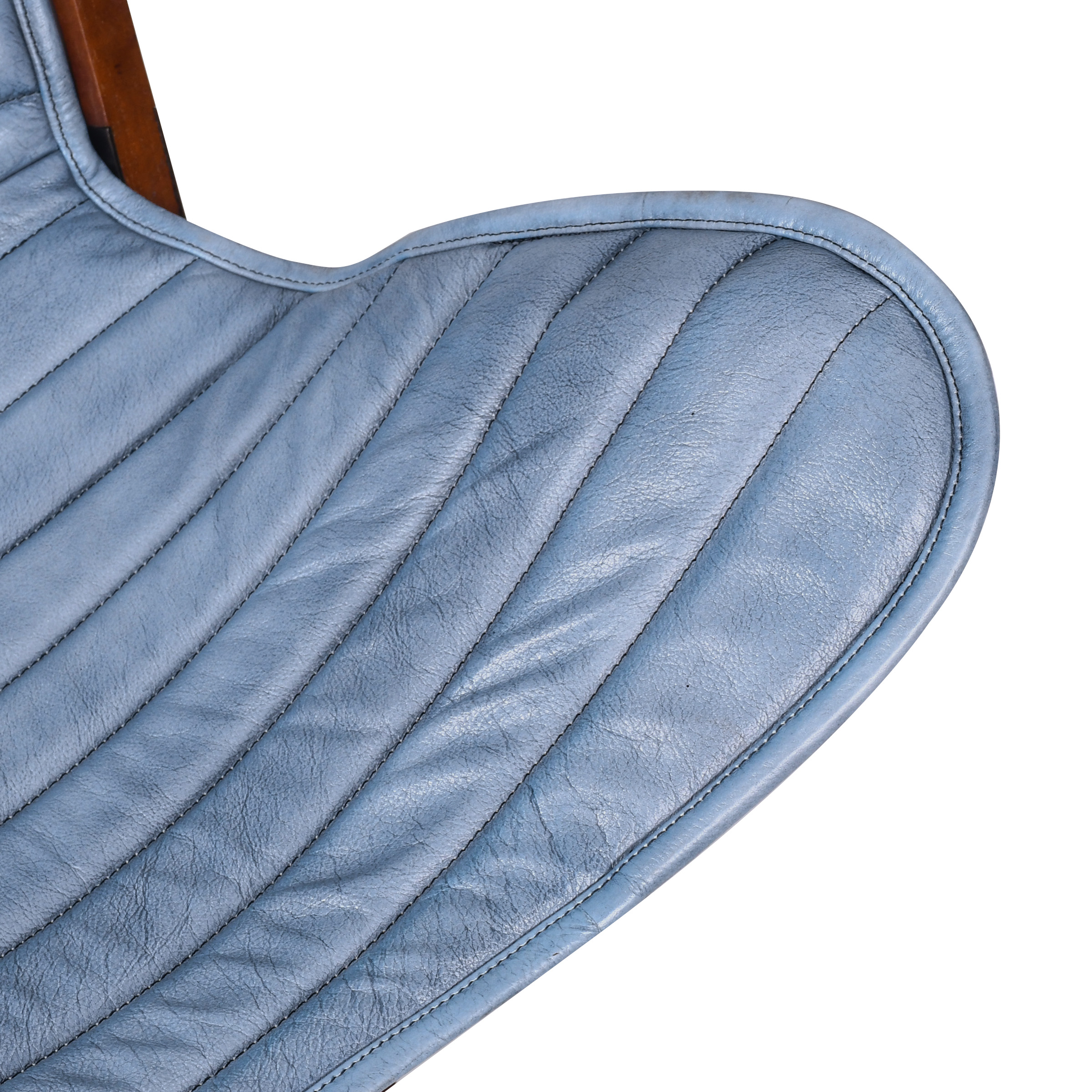• Сиденье из кожи нежно-голубого оттенка с вертикальной стяжкой — невесомость и стиль
