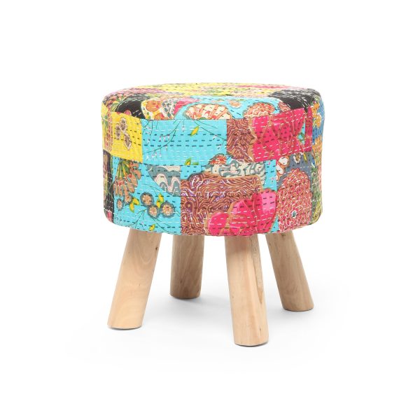 Табурет Kantha — роскошное изделие, своим дизайном напоминающее технику пэчворк. Пэчворк — это особая техника шитья, которая заключается в сшивании отдельных лоскутов ткани, разных по цвету и рисунку.
