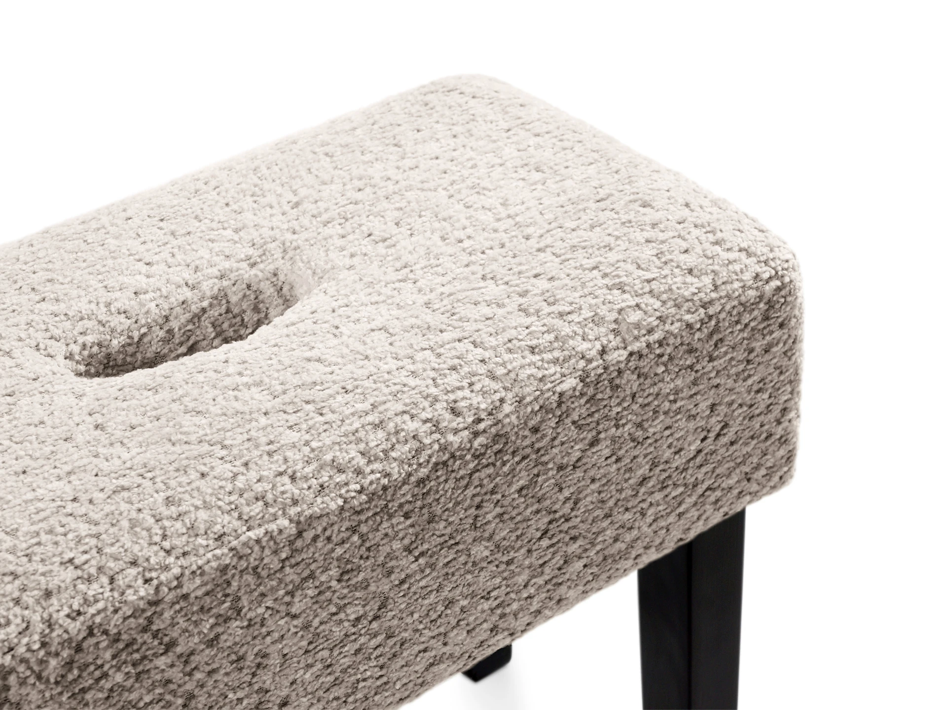 Табурет мягкий. Благодаря отверстию в верхней части табурет легко перемещать. Можно использовать под ноги, которые устают в течение рабочего дня или поставить в коридоре для удобства при обувании.