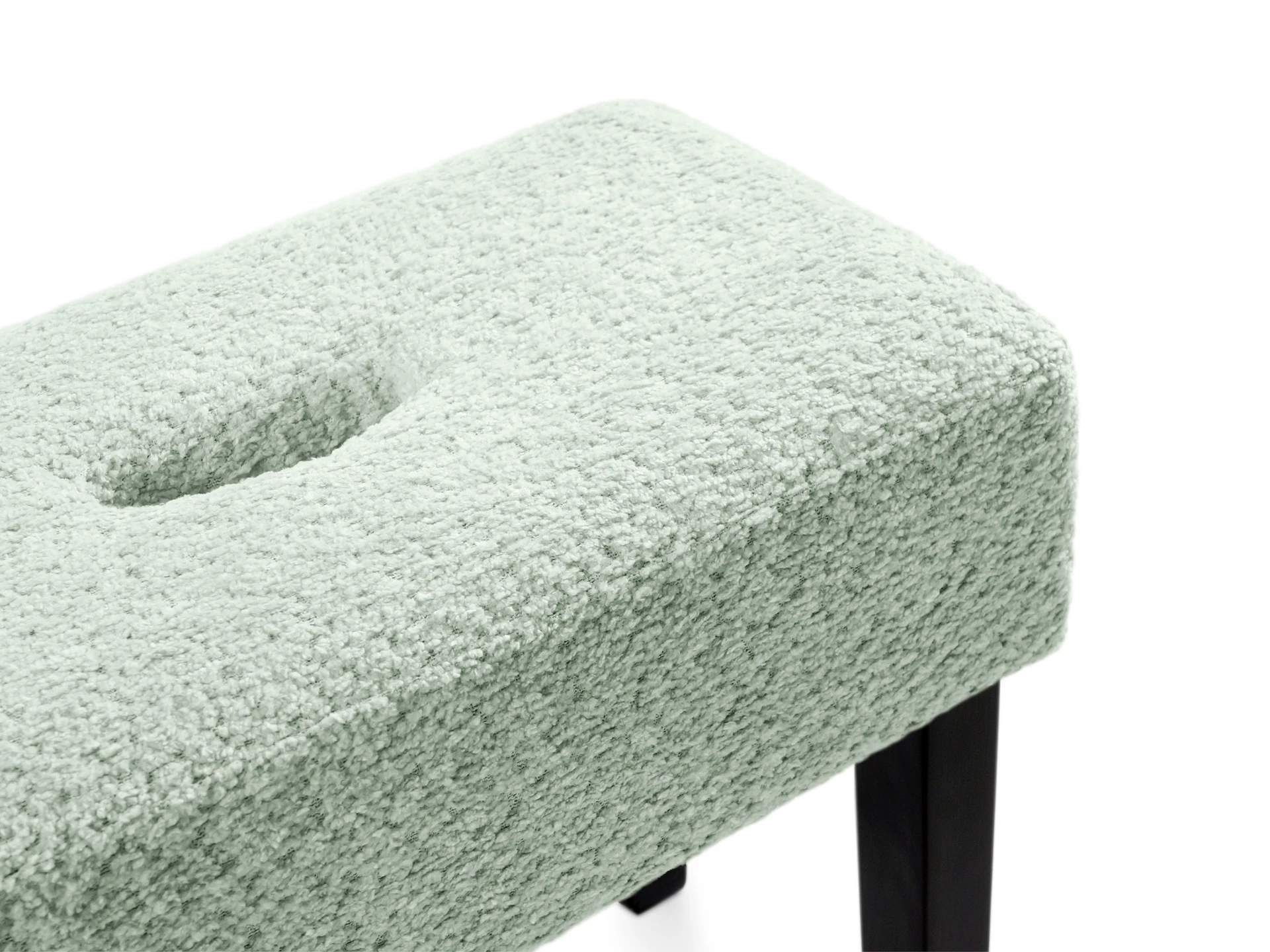 Табурет мягкий. Благодаря отверстию в верхней части табурет легко перемещать. Можно использовать под ноги, которые устают в течение рабочего дня или поставить в коридоре для удобства при обувании.