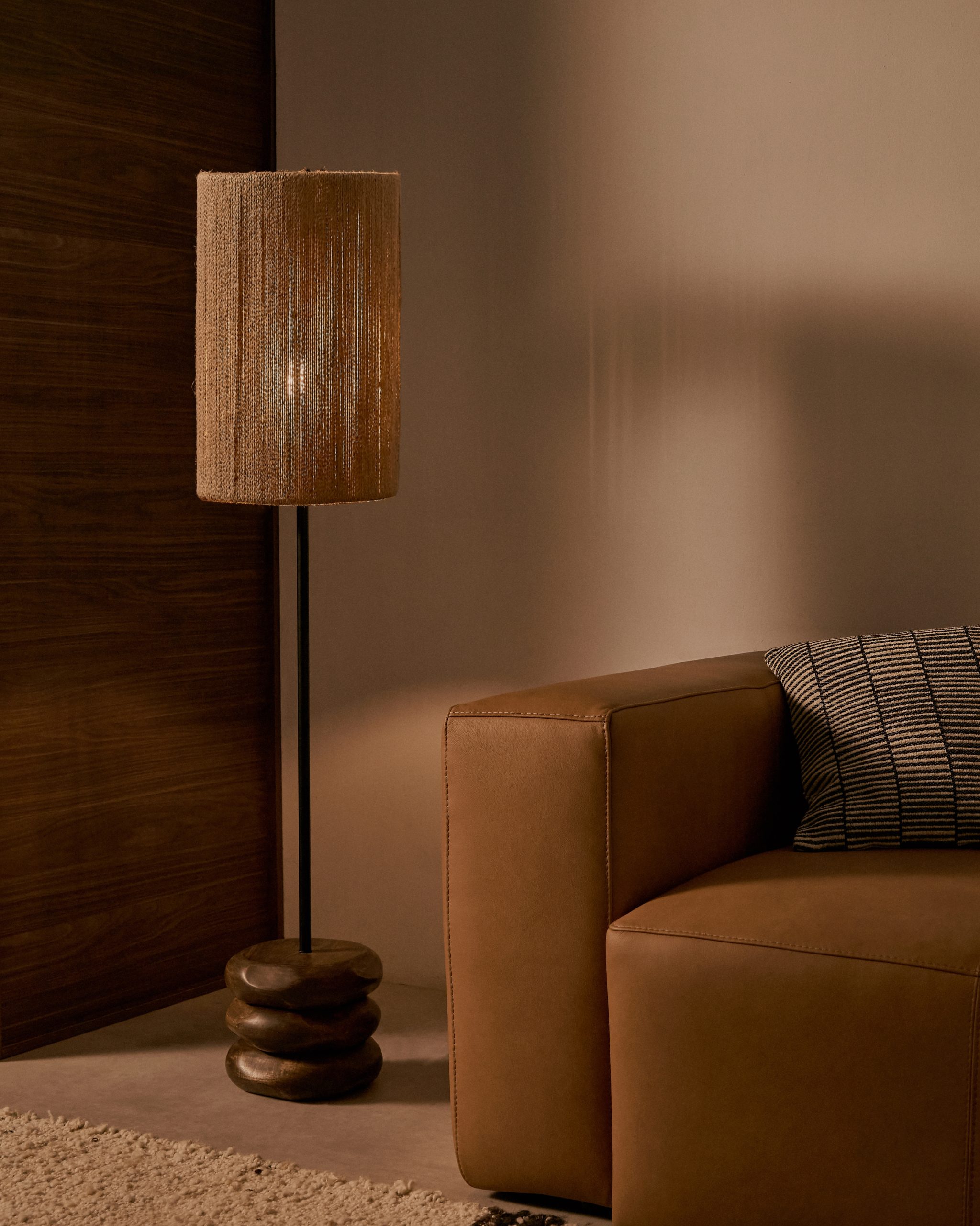 Торшер Kor из джута и акации в темной отделке