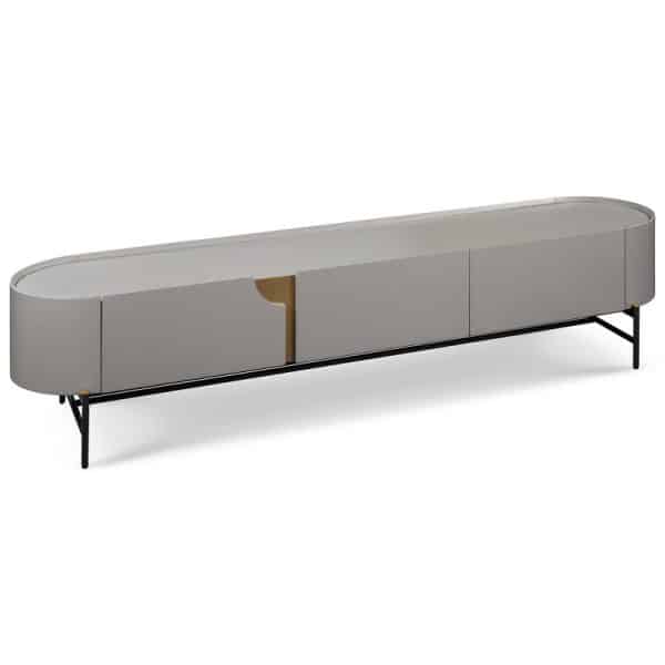 Серая тумба под TV в стиле ар-деко с латунными элементами от итальянского бренда Fratelli Barri. Каркас выполнен из МДФ, ножки — из прочного металла.