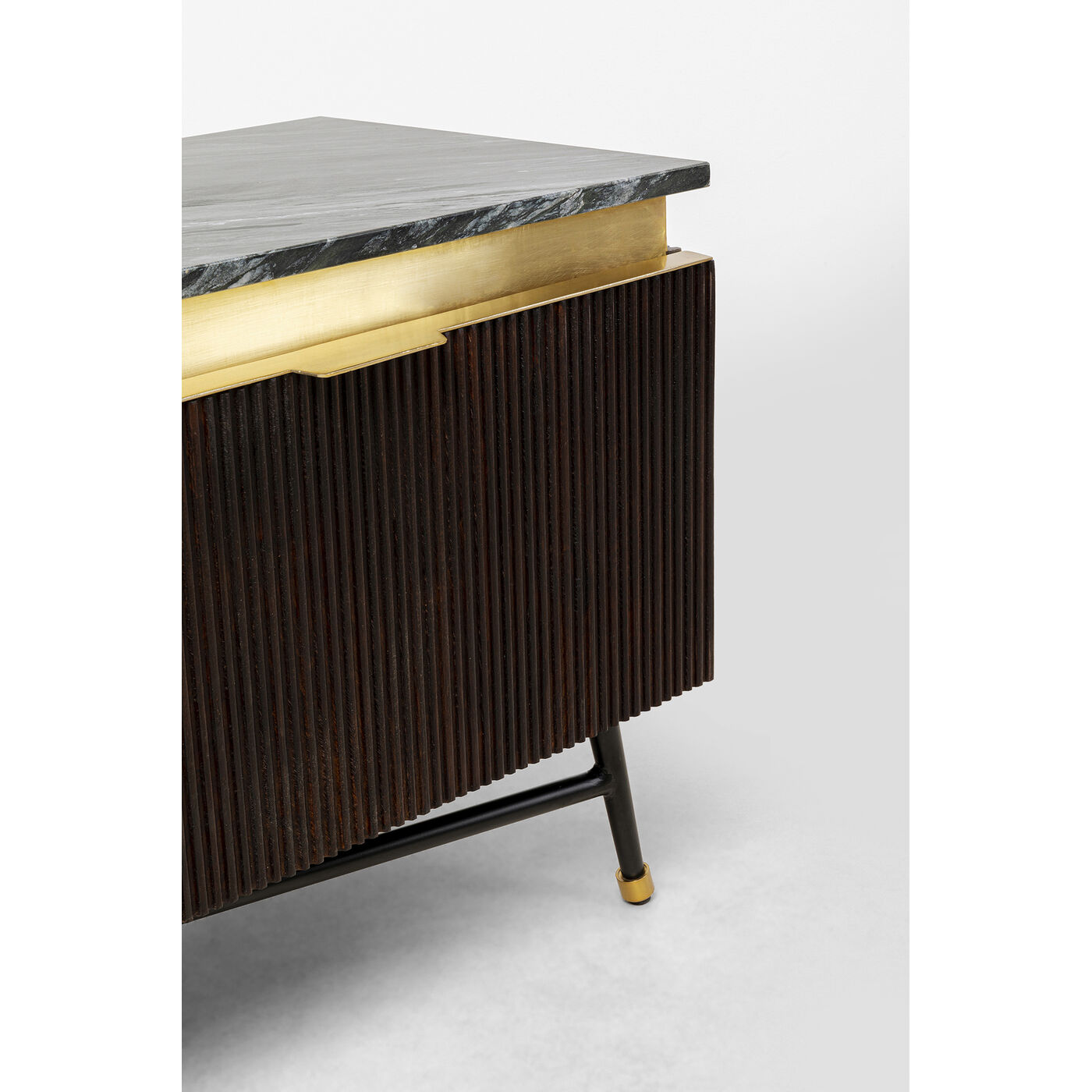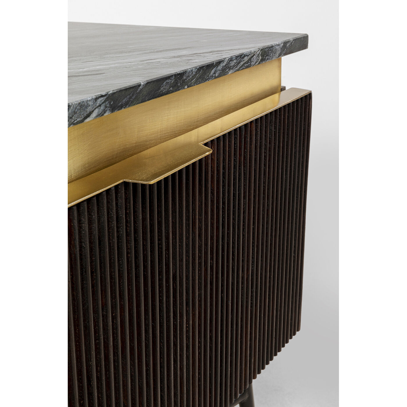 Низкий комод Catalina от KARE Design хорошо структурирован как снаружи, так и внутри. Две дверцы и одна откидная створка со скрытыми утопленными ручками покрыты массивом дерева манго с рифленой обработкой. За этими дверцами ваша коллекция фильмов или предметы декора будут в надежных руках. Однако венцом композиции является верхняя панель из натурального мрамора. Изделие можно использовать как в качестве ТВ-тумбы, так и в качестве комода и разместить сверху коллекцию декора.
