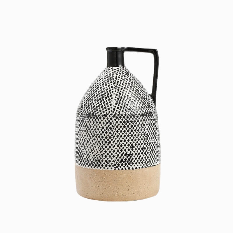 Добавить в отслеживание ценВаза из коллекции Rhombic Print — это стильный и современный аксессуар, выполненный в черно-белой гамме с бежевыми акцентами.
