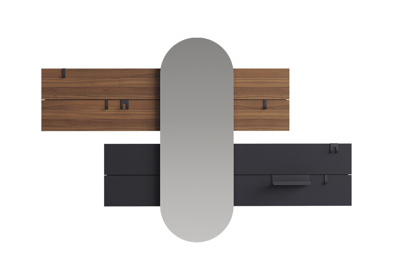 Вешалка Stripe L горизонтальная с зеркалом 60*160 см (орех, черный)