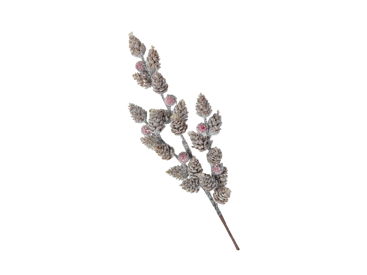 Ветка декоративная заснеженная с шишками и ягодами коричневый, белый