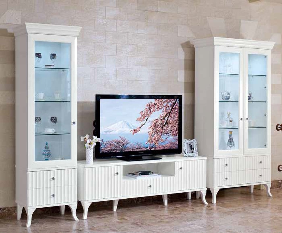 Витрина Buongiorno, оснащена одной дверцей с тремя полками и двумя выдвижными ящиками.