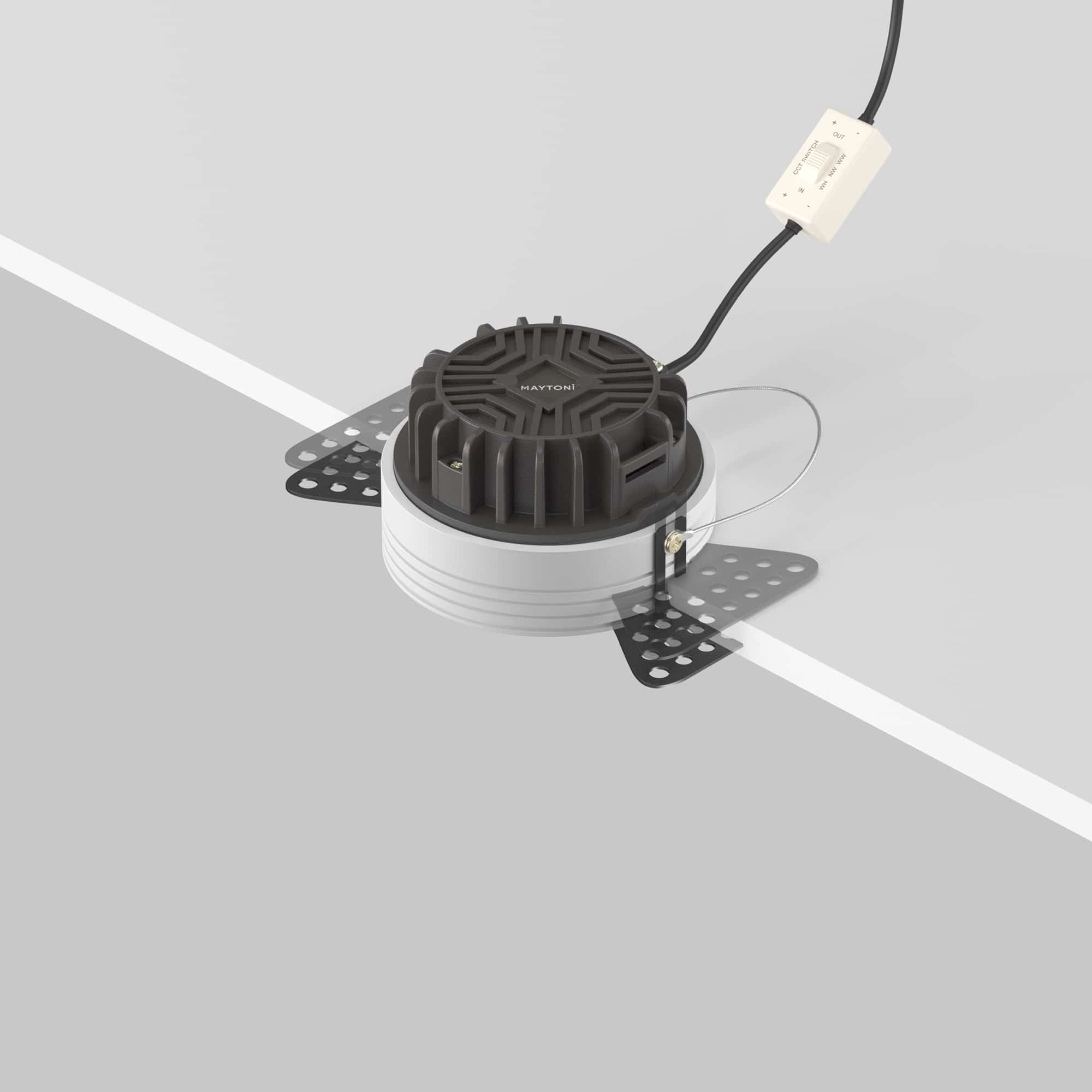 Материал арматуры — алюминий и пластик. Организация основного освещения в интерьере. Высокий коэффициент цветопередачи >90. Качественное отображение цветов. Утопленный матовый рассеиватель. Переключатель цветовой температуры. Повышенная степень пылевлагозащиты IP 44.