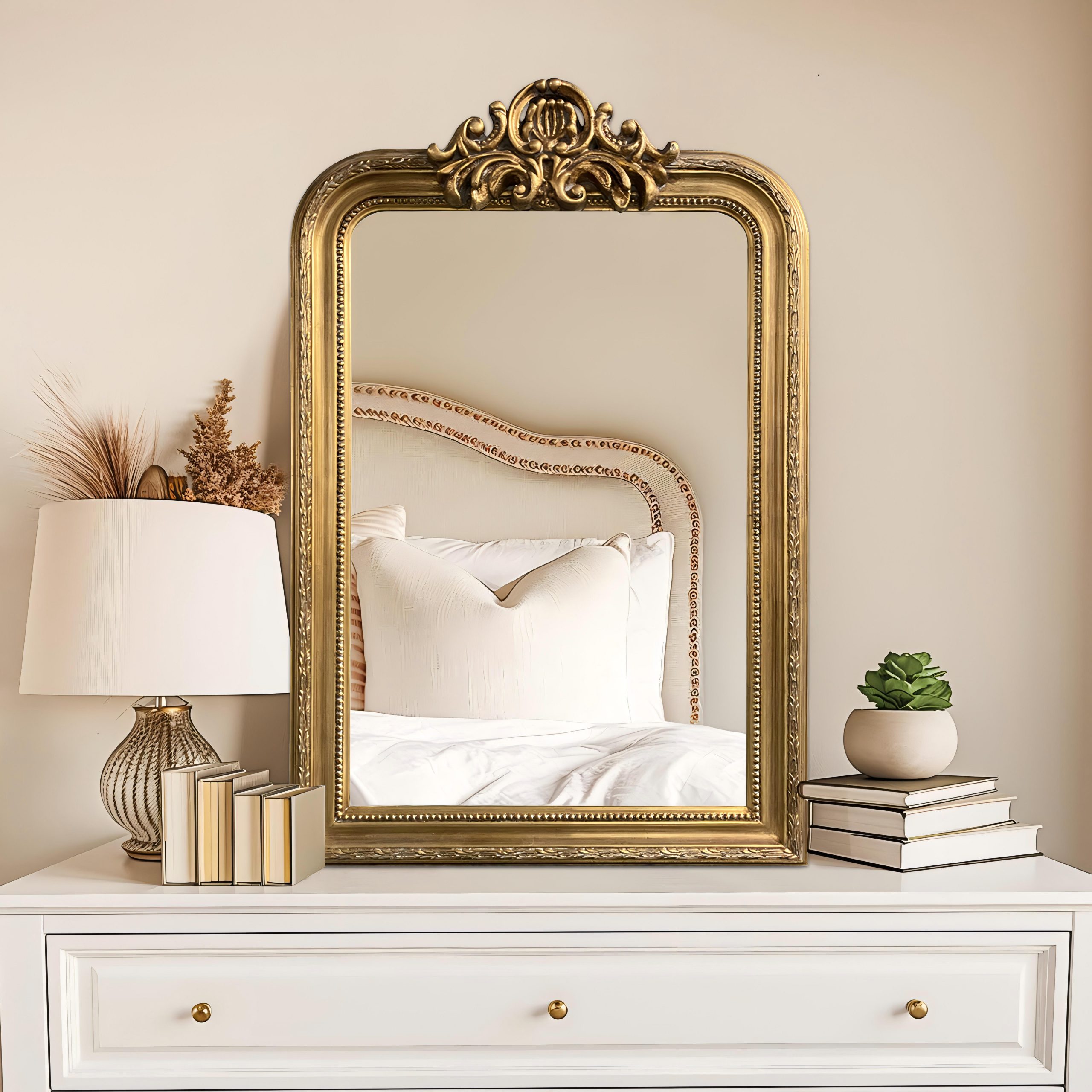 Зеркало Louvre Gold — это воплощение утонченной роскоши и классического французского стиля. Элегантная позолоченная рама с изысканными декоративными элементами добавляет интерьеру статусности и шарма. Идеально подходит для просторных гостиных, изящных спален и элегантных прихожих.