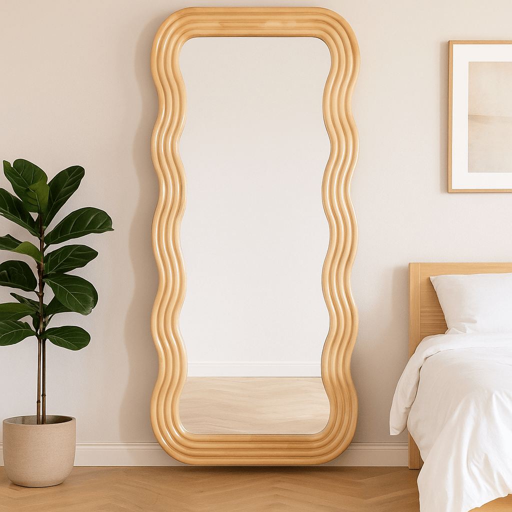 Зеркало станет выразительным акцентом в спальне, гостиной или прихожей в стиле modern, scandi, japandi или boho. Подходит как для настенного крепления, так и для установки на пол.