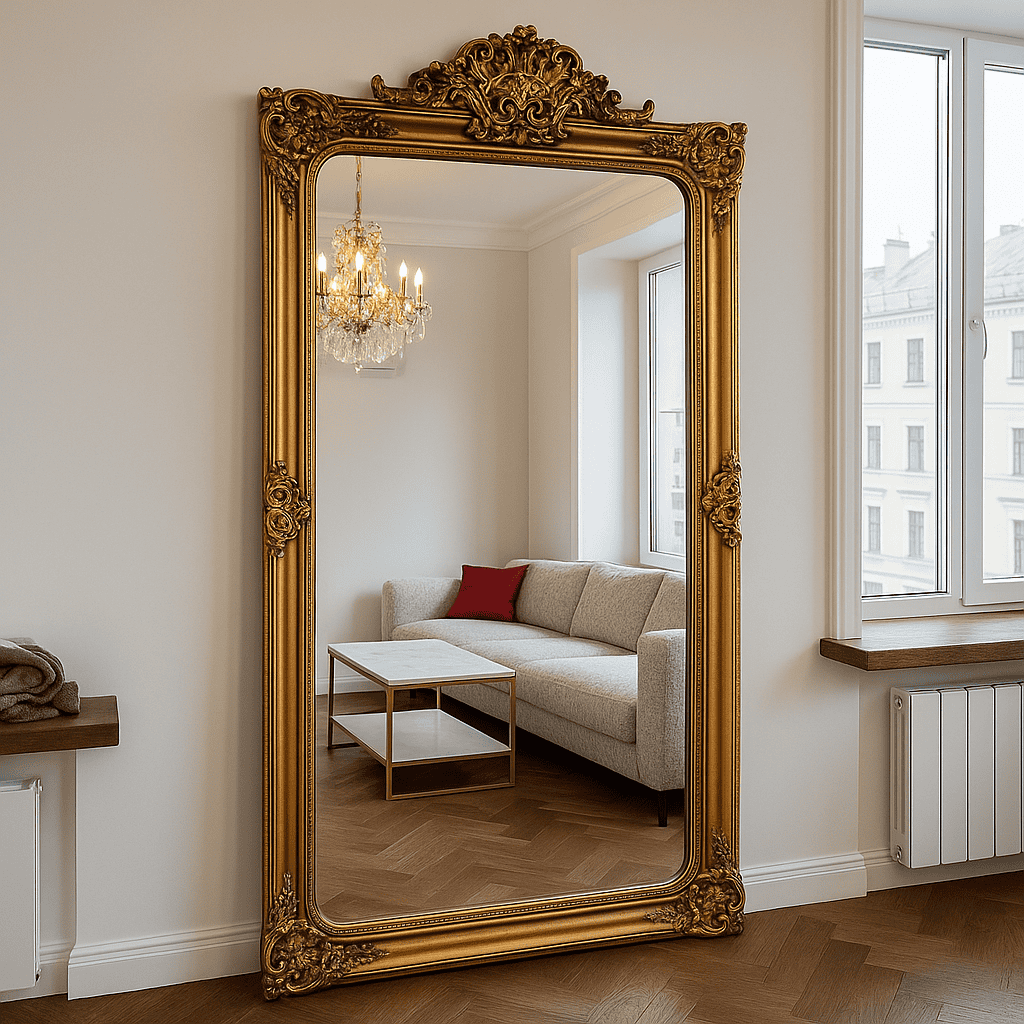 - Высота 2 метра — эффектное зеркало в полный рост, подчёркивающее масштаб и роскошь интерьера.