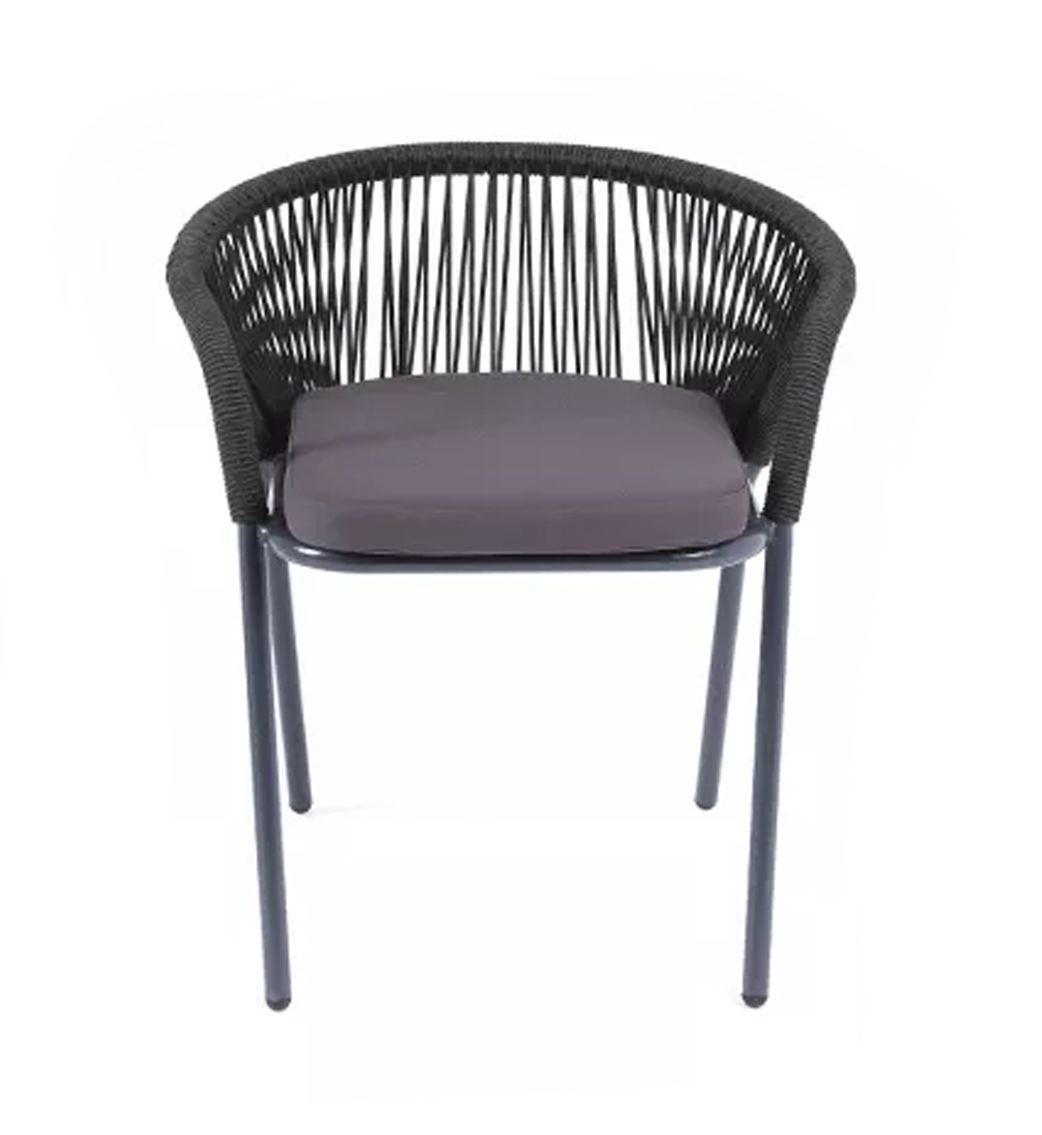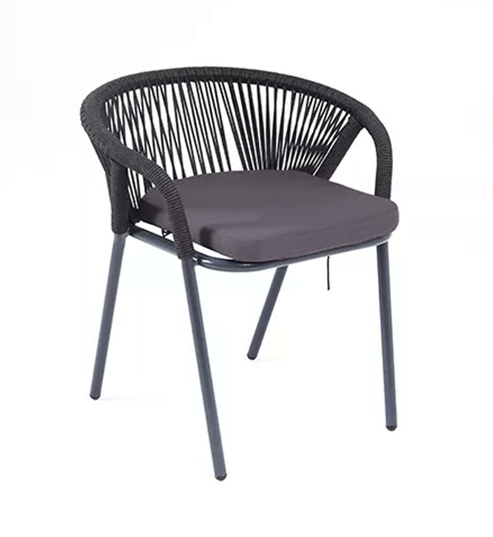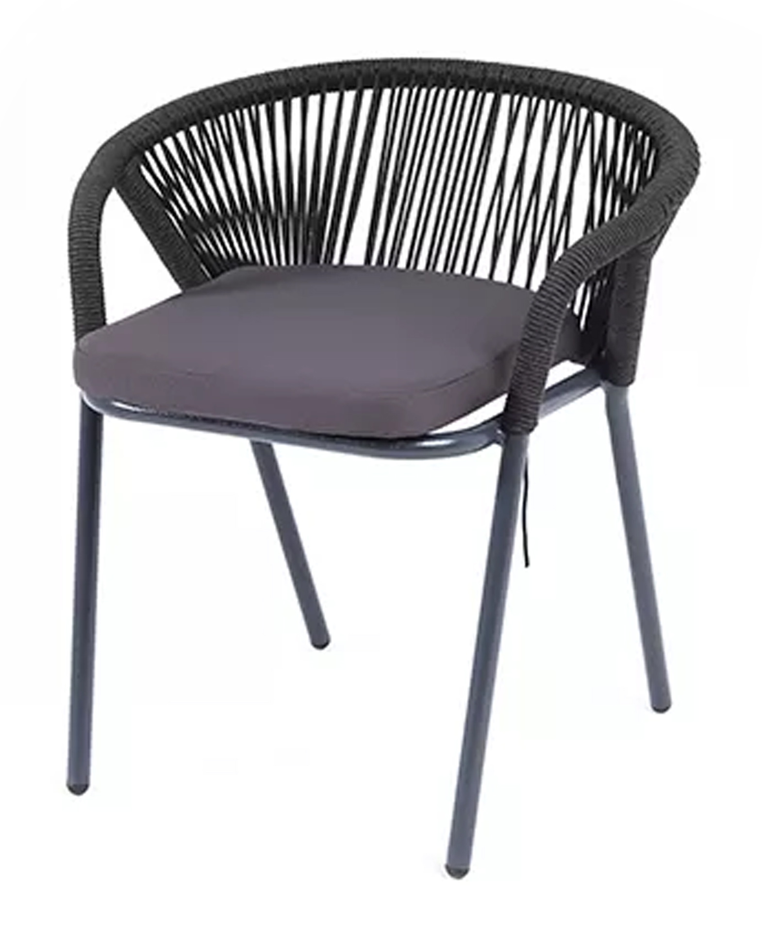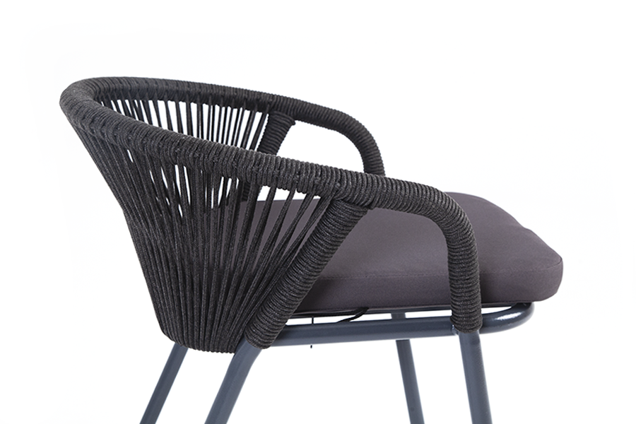 «Женева» стул плетеный из роупа, каркас алюминий темно-серый (RAL7024) шагрень, роуп темно-серый круглый, ткань темно-серая