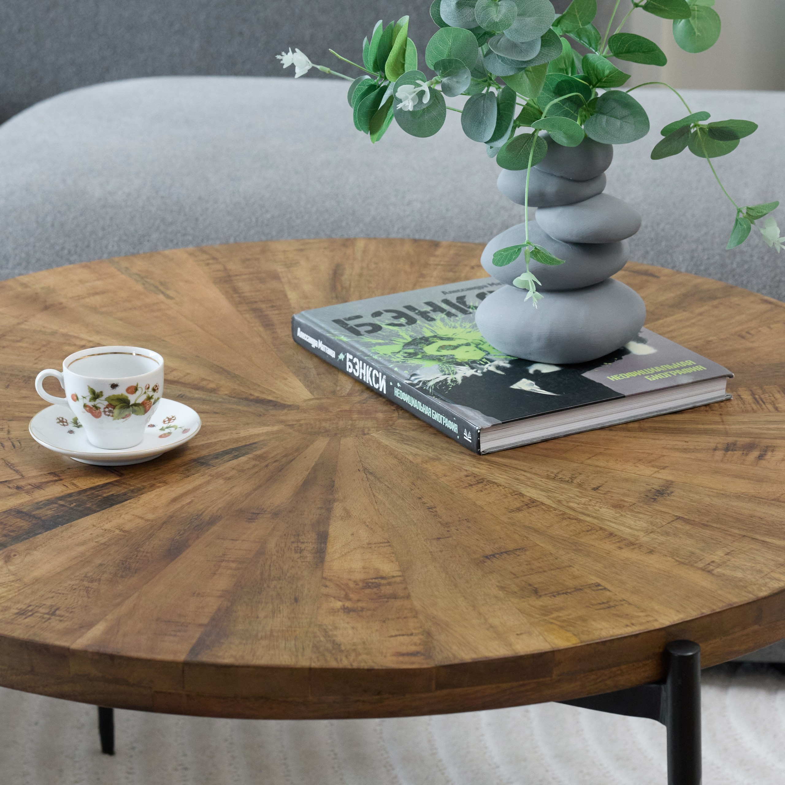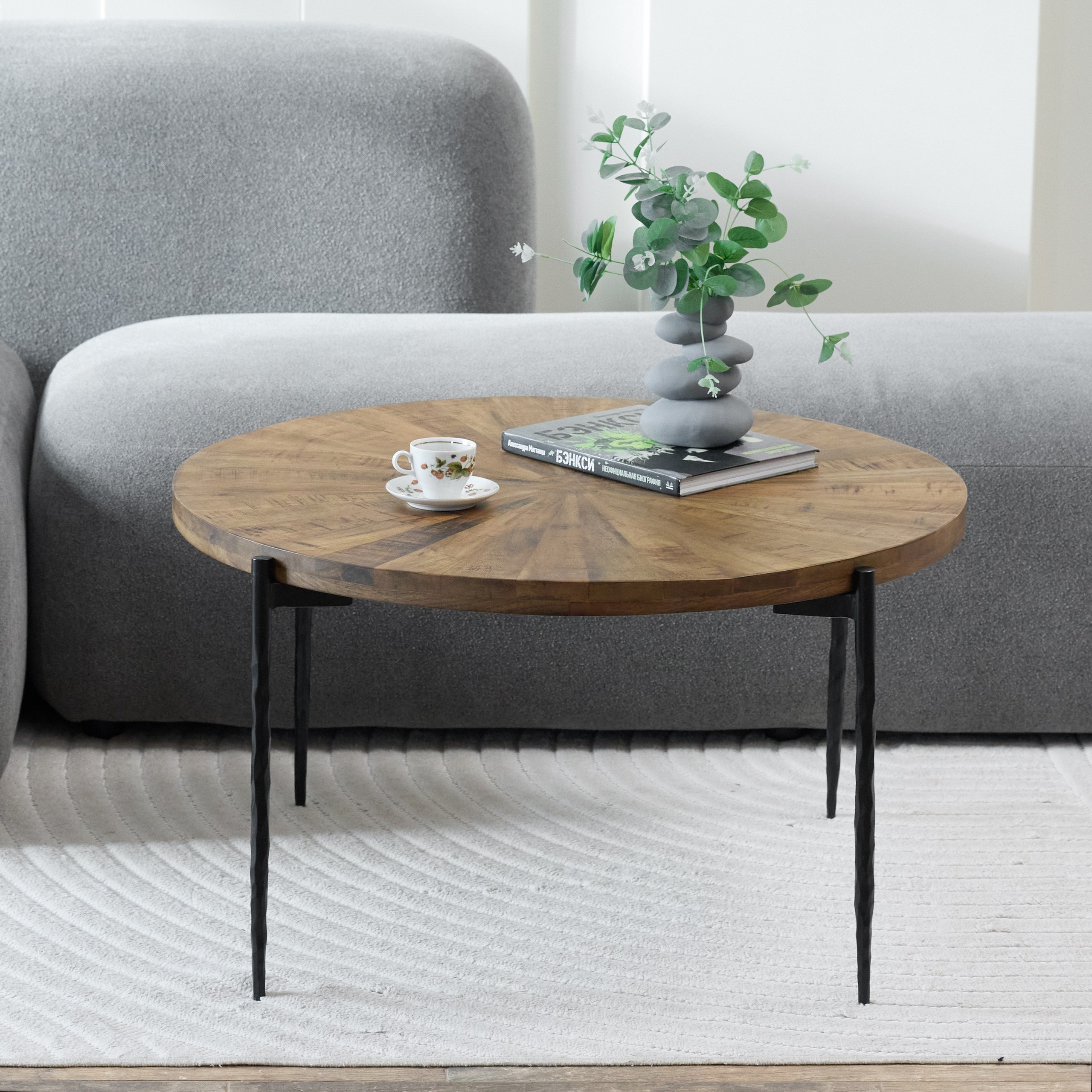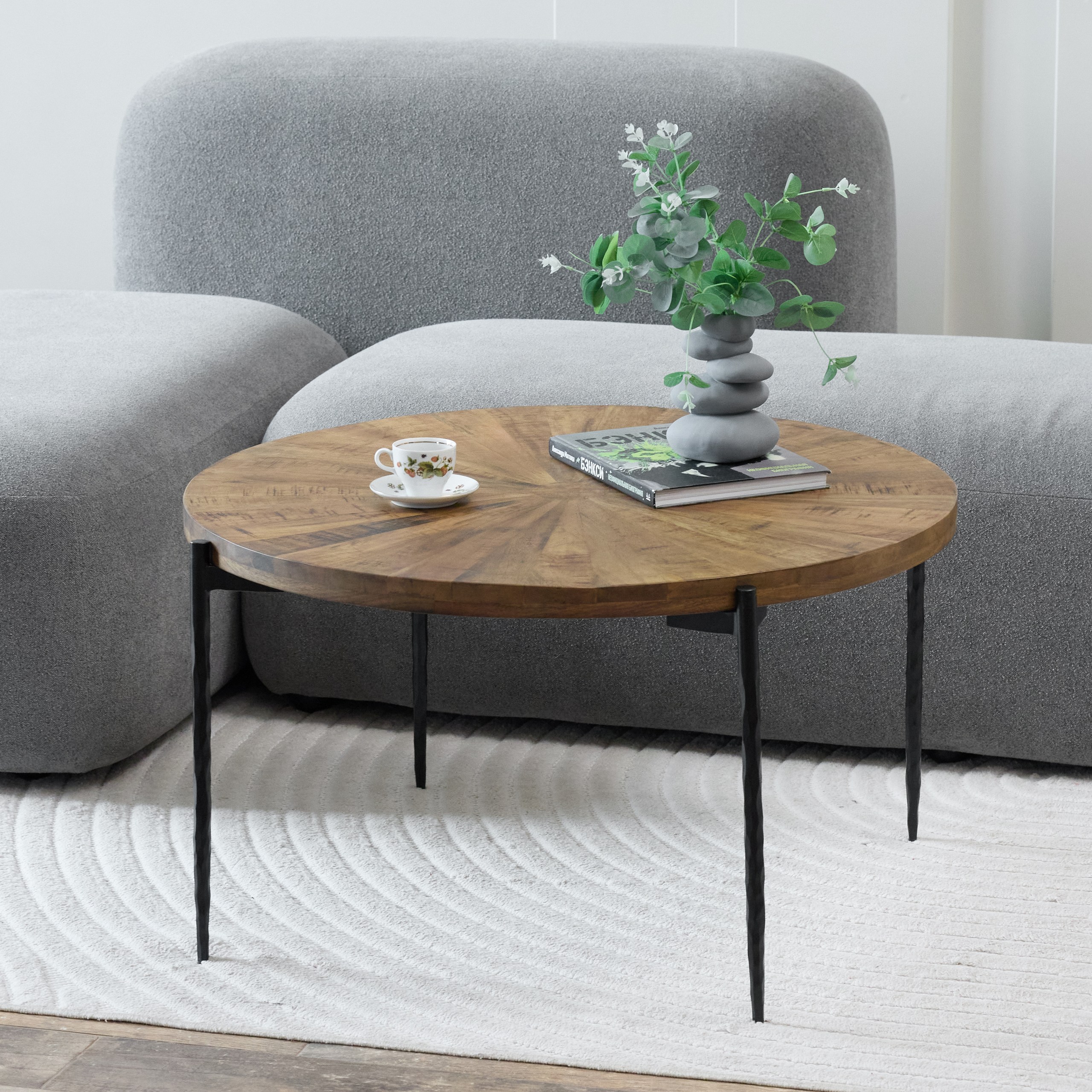 Круглый журнальный стол, в котором идеальная геометрия формы создаёт гармоничный центр притяжения. Конусообразные резные ножки чёрного цвета придают конструкции графичную строгость и лёгкость, а столешница насыщенного тёмно-коричневого оттенка раскрывает всю глубину и благородство массива. Этот стол не имеет «главной» стороны — он одинаково красив с любого ракурса.