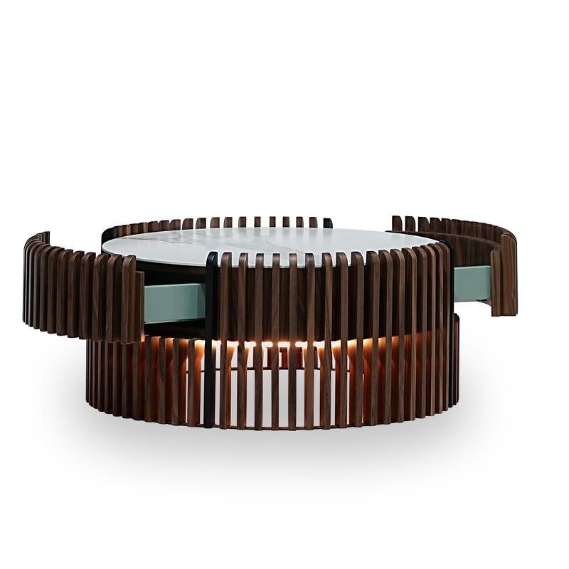 Вечером столик раскрывается по-новому благодаря встроенной LED-подсветке. Мягкое свечение создает интимную атмосферу в комнате, а сенсорный выключатель (touch switch), расположенный прямо на столешнице, позволяет легко управлять светом.
