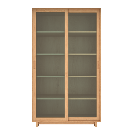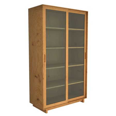 Книжный шкаф-витрина с раздвижными дверьми дуб