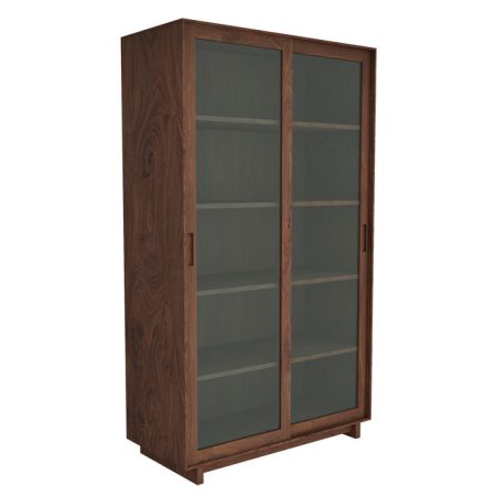 Книжный шкаф-витрина с раздвижными дверьми орех