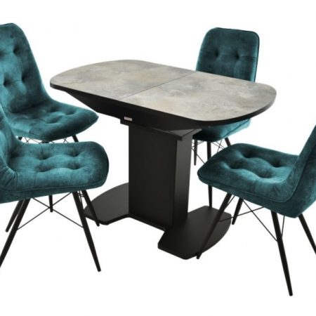 Обеденная группа (Стол Корсика Мрамор светлый и 4 Бордо Милано 12), черный